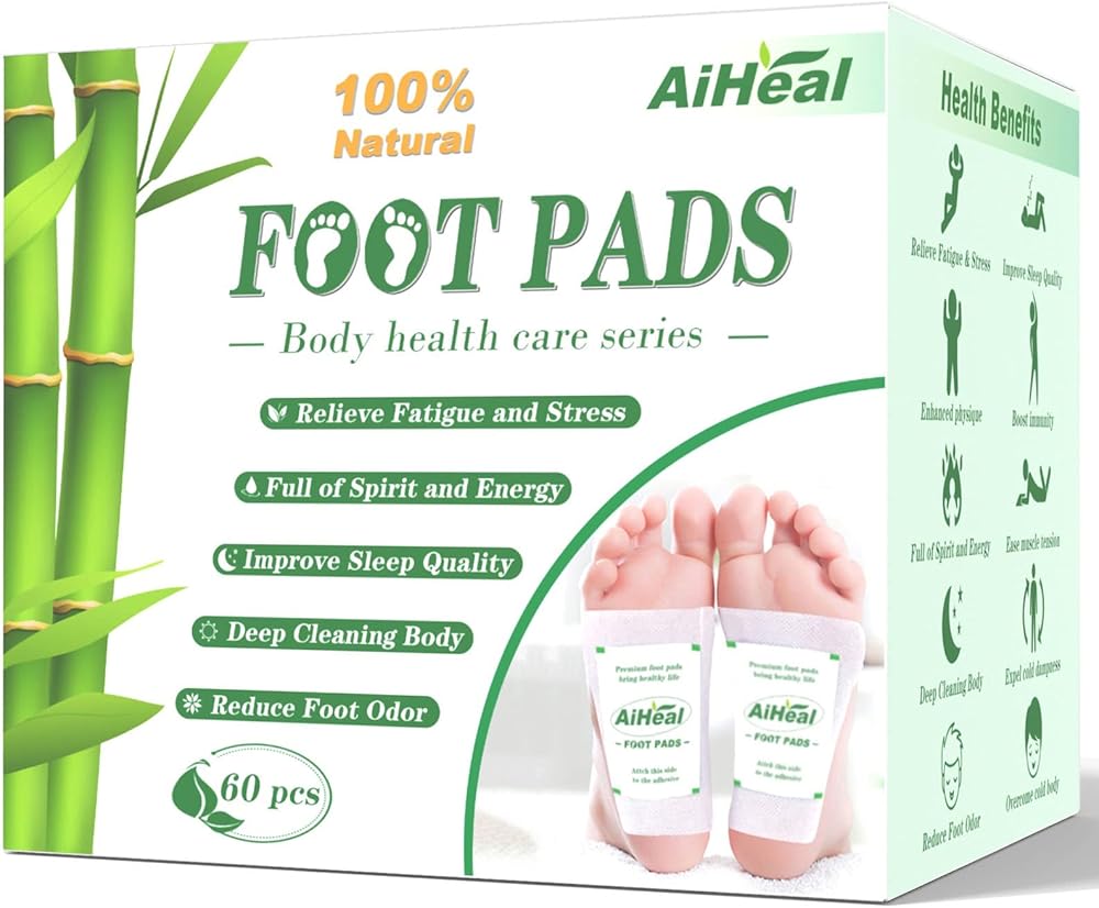 وسادات القدم من آيهيل (60 قطعة)، وسادات قدم للتنظيف العميق من أجل نوم أفضل والعناية بالقدم، وتخفيف التعب والإجهاد، رقع قدم من مكونات طبيعية ممتازة مع مسحوق الزنجبيل وخل الخيزران