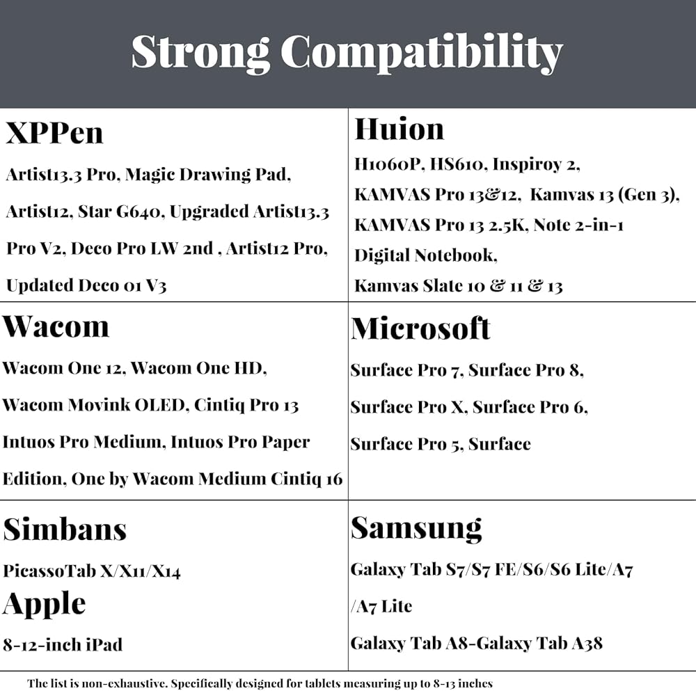 Compatibility: Designed to work with a wide range of stylus brands, including Apple Pencil (Pro, 1st, 2nd generation), Samsung S Pen, Microsoft Surface Pen, Wacom Pen, XP-PEN, Huion, and more — ensuring you can use your favorite pen with any device you own
