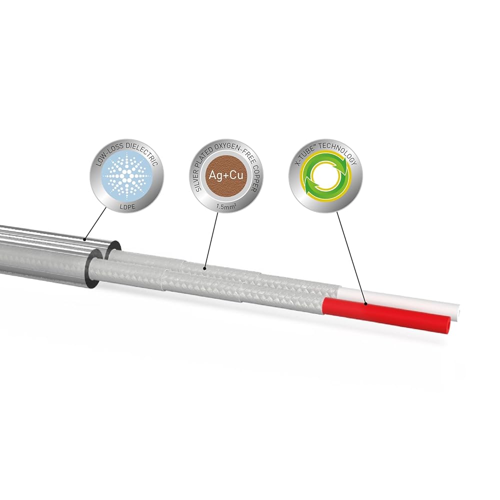 • Unique X-Tube technology delivers an even, consistent performance across the entire audible frequency range. Silver-plated 99.999% oxygen-free copper conductor blend helps improve the signal path and signal retention.