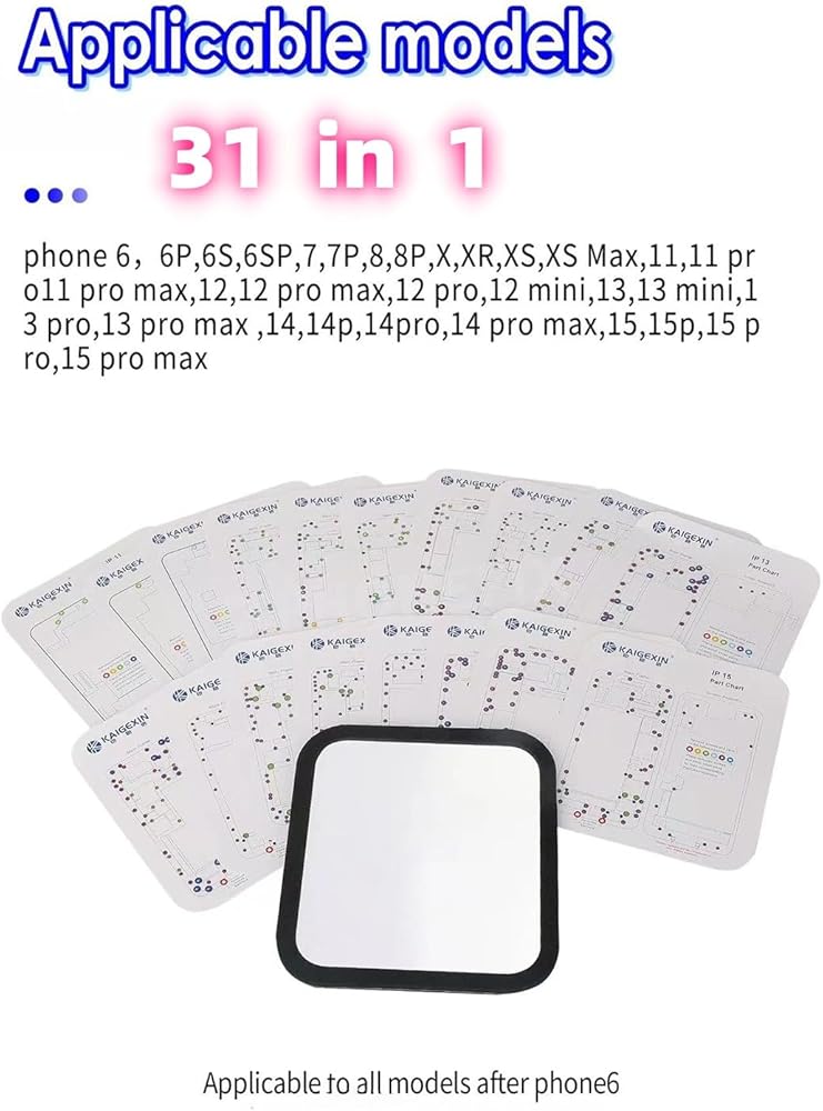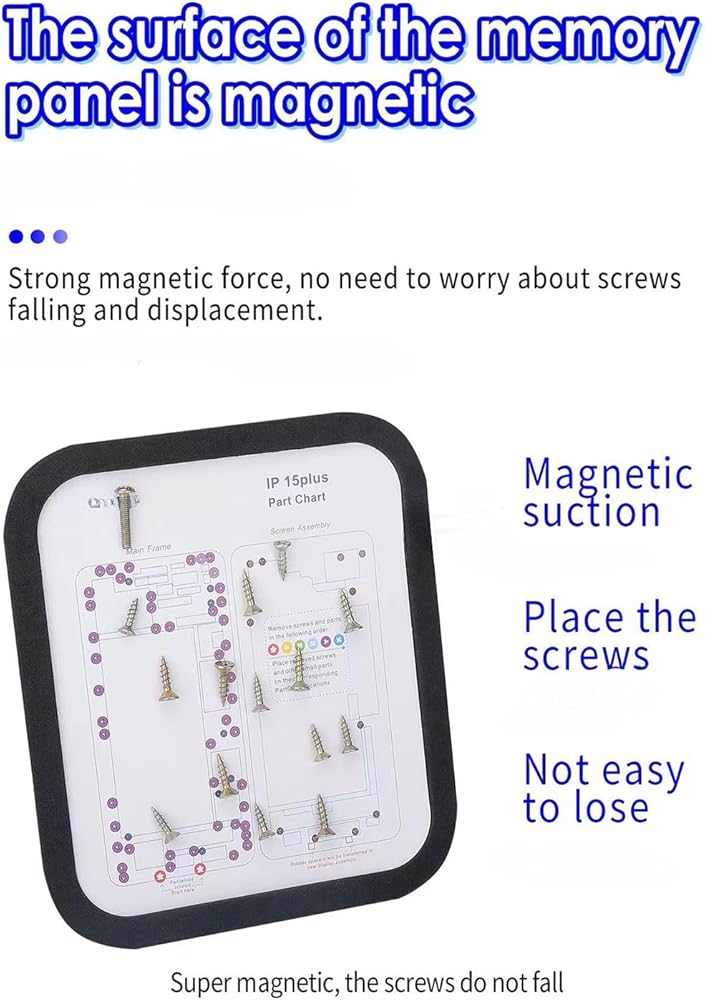 31 in 1 MagneticPRECISION SCREW MANAGEMENT FOR iPHONE REPAIRS – The ultra-strong magnetic mat securely holds screws, springs, and tiny components during disassembly, while 31 labeled maps (covering iPhone 6 to 15 Pro Max) provide exact screw positions, lengths, and torque specifications for error-free reassembly. PREVENT LOSS & MIX– Designed for Apple's intricate screw systems), the anti-slip silicone mat keeps screws organized by model-specific zones. Avoid costly mistakes like using mismatched screws that damage logic boards or compromise water resistance. Screw Memory Mat