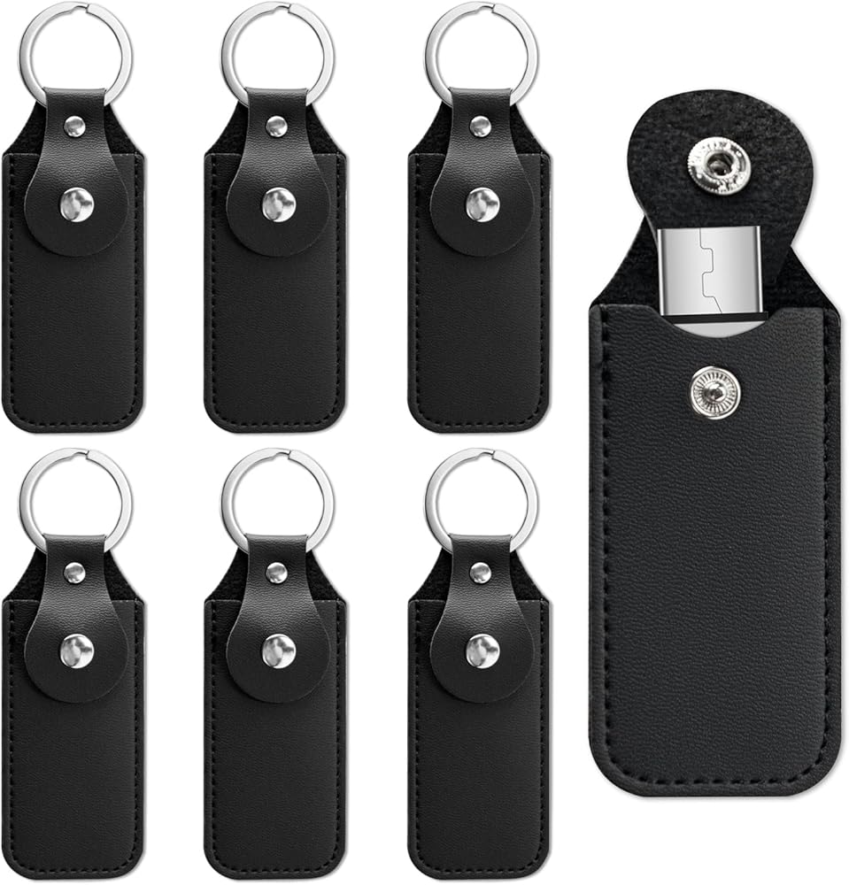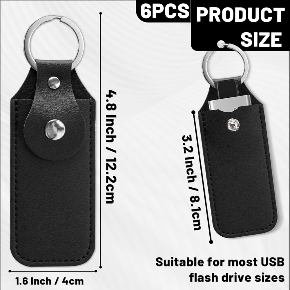 6pcs Leather U Disk Bag Keychain Holder USB Flash Drive Storage Bag
