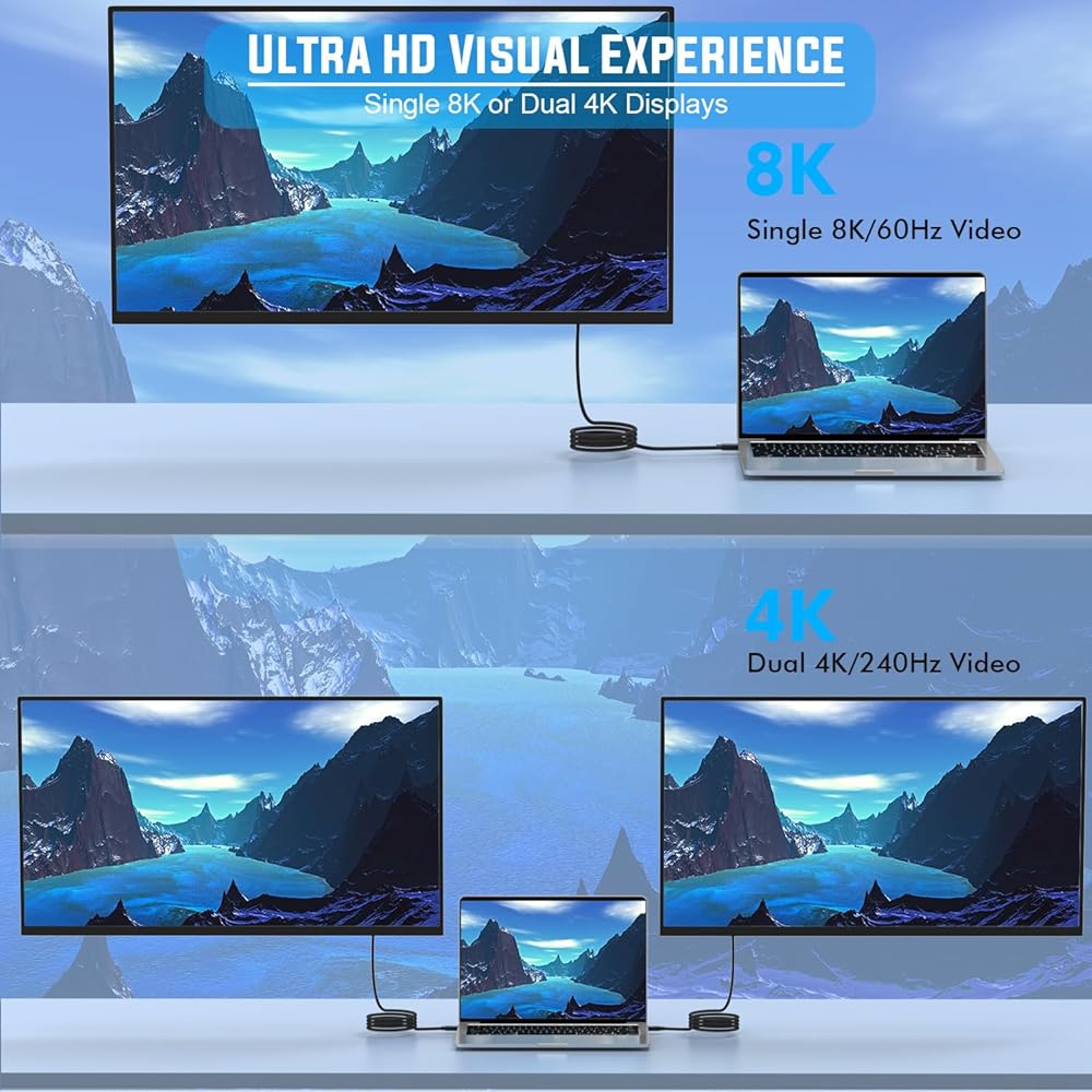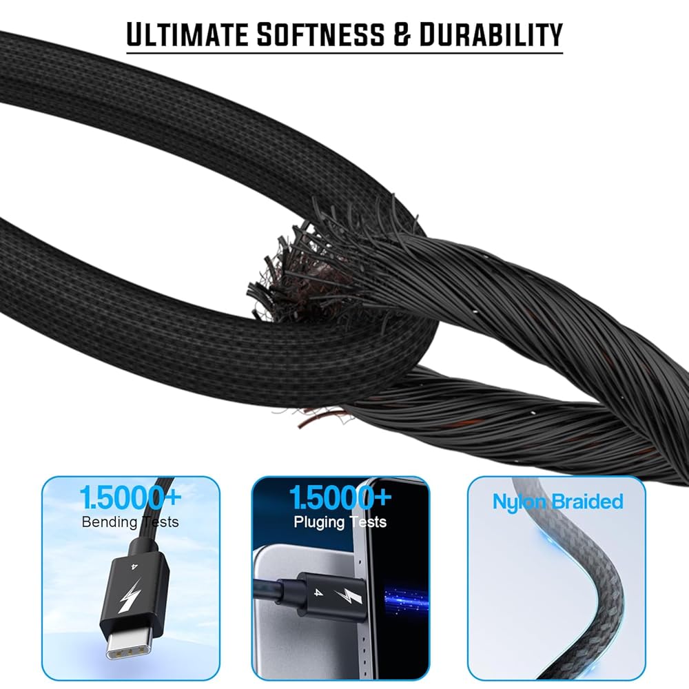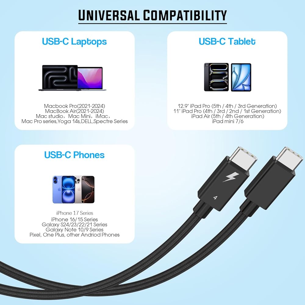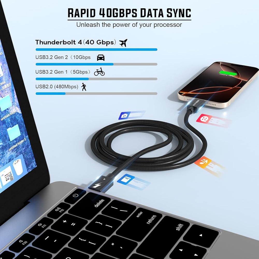 كابل Thunderbolt 4 بطول 6.6 أقدام، كابل USB C طويل إلى USB C، يدعم شاشات 8K/4K، 40 جيجابت في الثانية، شحن سريع 240 وات، كابل بيانات من النوع C المضفر لـ Thunderbolt 3، USB4، MacBook Pro، iPhone 17/16/15، iPad
