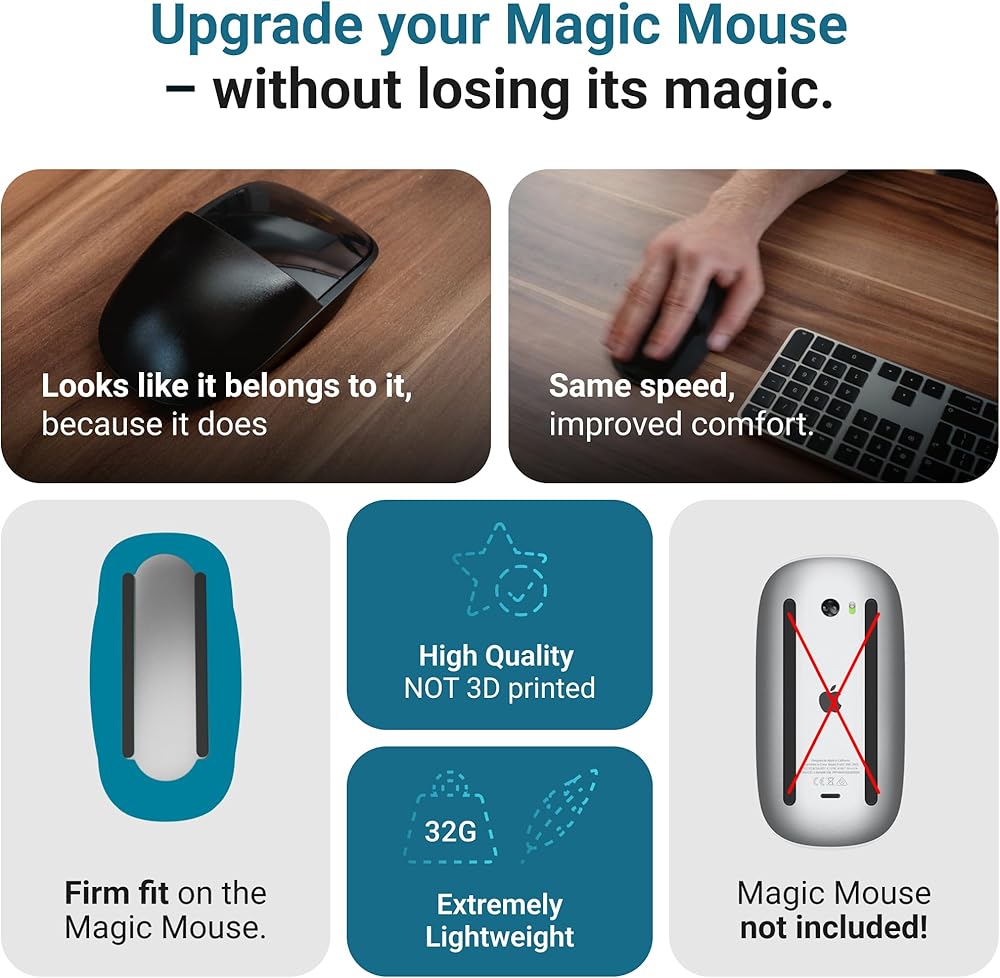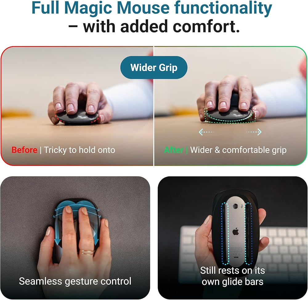 FOR A BETTER MAGIC MOUSE ERGONOMIC GRIP: Wider sides improve your Magic Mouse comfort – more control, more stability, and more space for thumb and pinky.