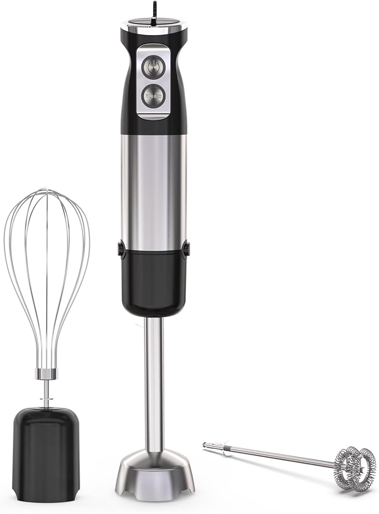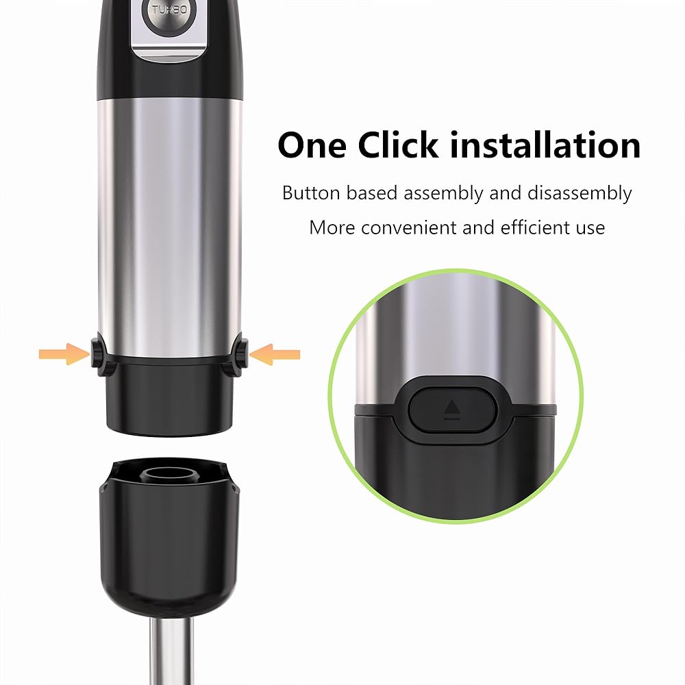 【1000W محرك قوي وجسم من الفولاذ المقاوم للصدأ】 مجهز بمحرك عالي السرعة 1000 واط ، يضمن خلاط الغمر المحمولة محمولة محمولة فعالة لإنشاء عصائر لذيذة ، حساء ، الصلصات ، العصائر ، وما إلى ذلك ، وداعًا للصلصات والضربات ، وجسم الصلب غير القابل للصدأ متكرر.