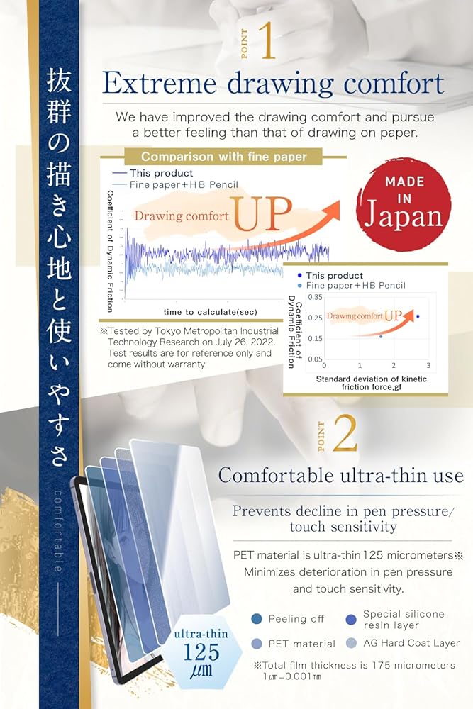 【الراحة في التصميم الرفيع للغاية】 طبقة الحيوانات الأليفة للفيلم هي رفيعة للغاية ، حيث يبلغ سمكها 0.125 ميكرومتر فقط. يقلل هذا التصميم أي انخفاض في حساسية ضغط القلم أو استجابة اللمس ، مما يضمن التوافق مع كل من الجيل الأول والثاني من قلم القلم الرصاص.