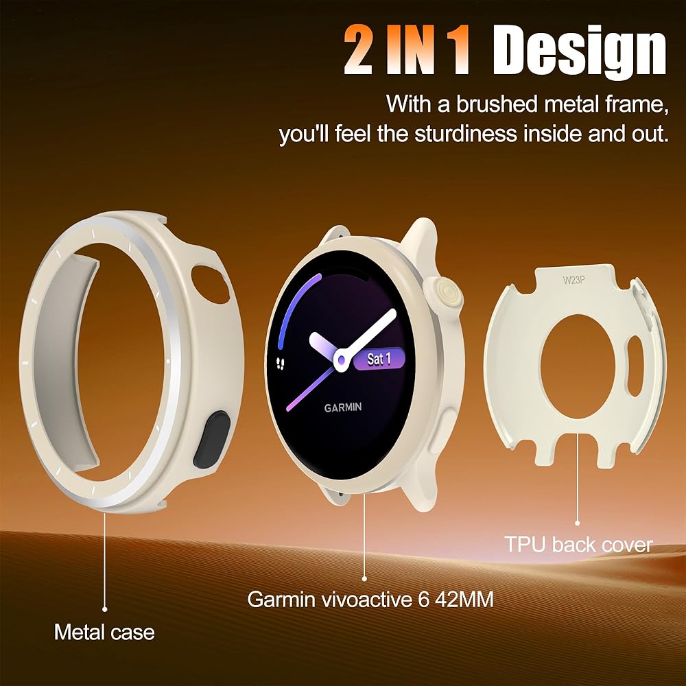 【الأزياء الفريدة】 2-in-1 الإطار المعدني من الفولاذ المقاوم للصدأ والغطاء الخلفي TPU المصمم خصيصًا لـ Garmin Vivoactive 6 ، يتيح التثبيت غير المدمر الاستخدام السهل لجميع الميزات (إخلاء المسؤولية: شاشة واقي غير متضمن)