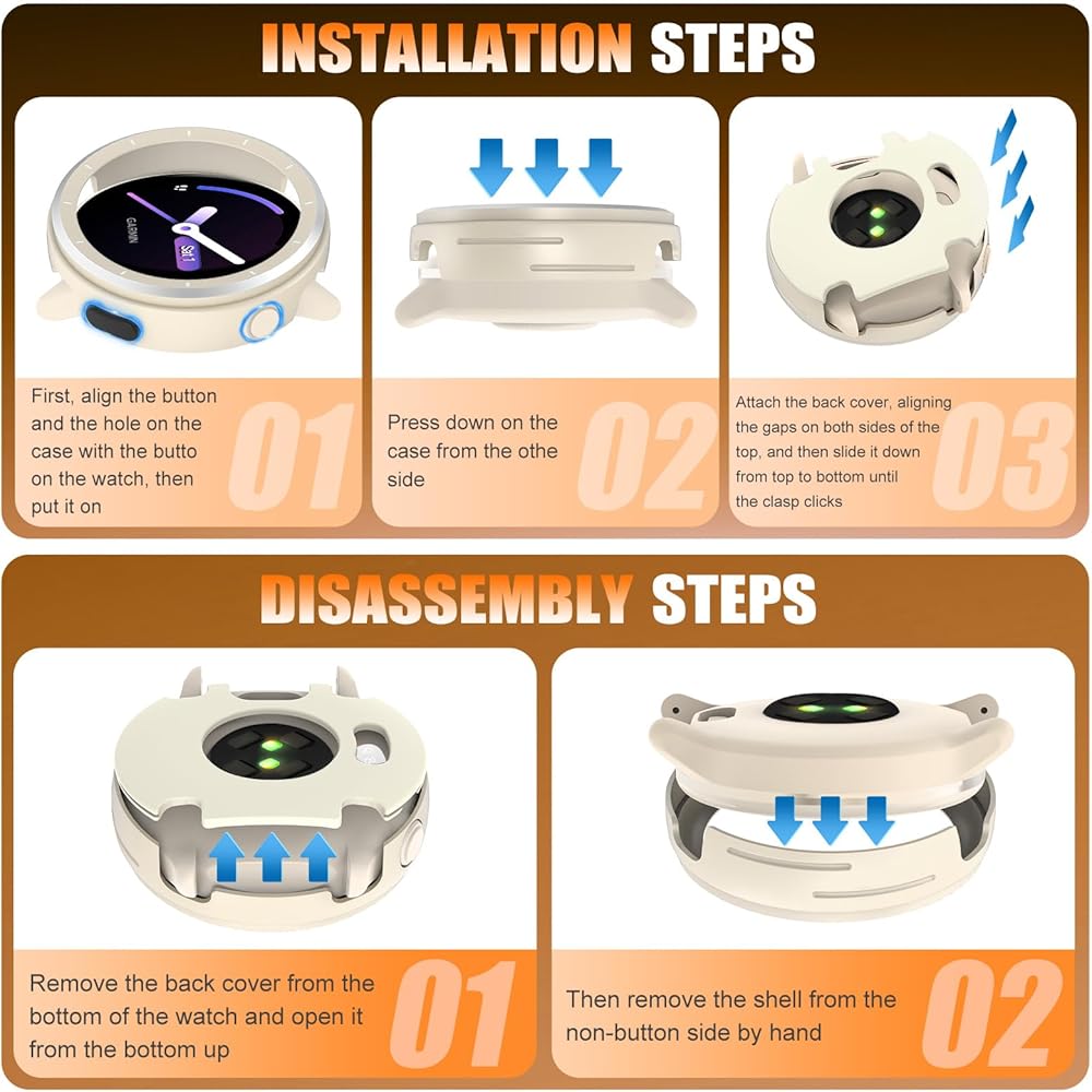 【يتيح التثبيت السهل تثبيت】 التثبيت السهل الوصول إلى جميع عناصر التحكم والأزرار وأجهزة الاستشعار ووظائف المراقبة. لا يؤثر على استخدام أي وظائف. يمكن شحن Garmin Vivoactive 6 مباشرة بعد ارتداء القضية دون إزالة القضية