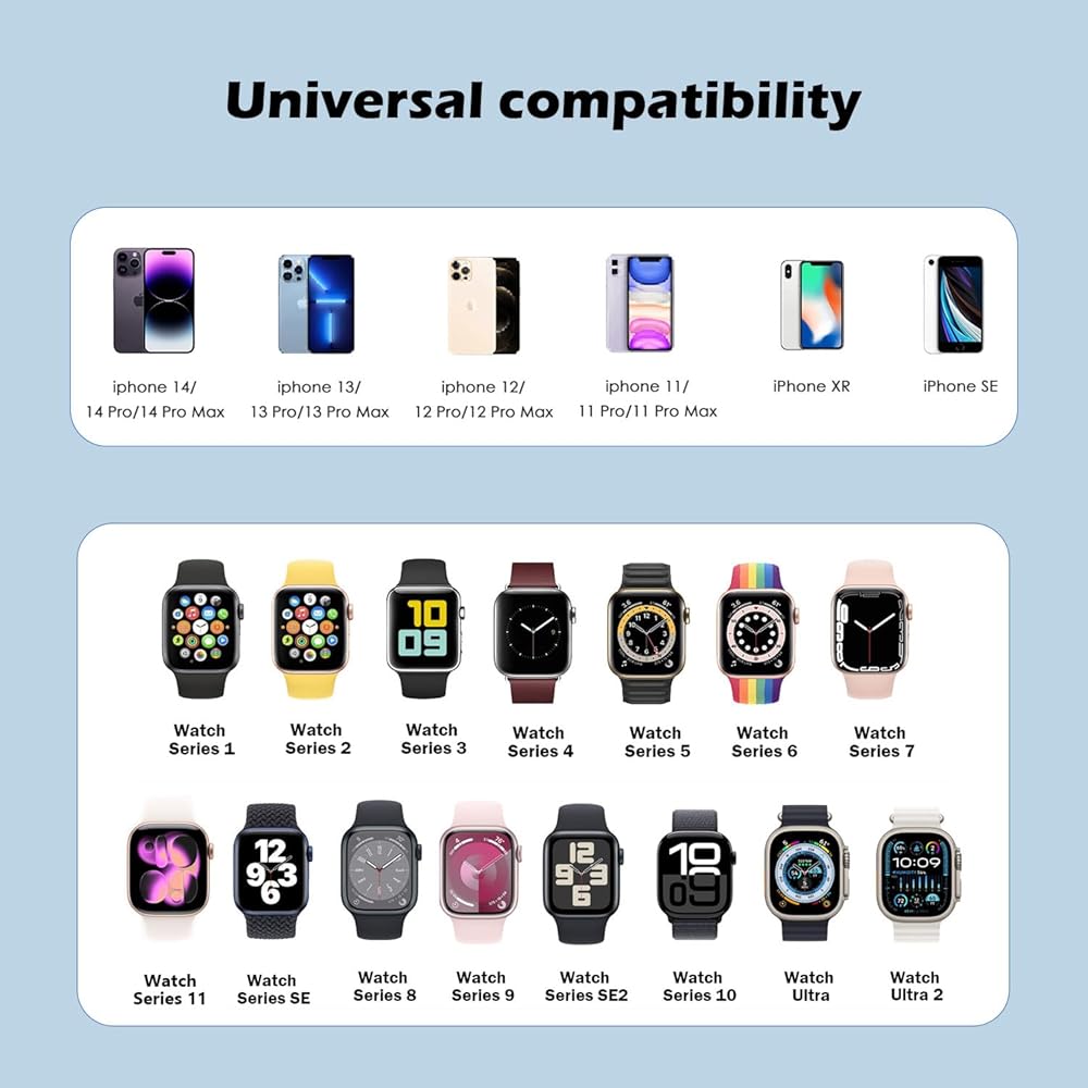 [ Wide Compatibility ]Universal Compatibility for all Apple watch Series 10/9/8/7/Ultra 1/Ultra 2/6/SE/SE2/5/4/3/2/1(including all 38mm, 40mm, 41mm, 42mm, 44mm, 45mm, 49mm versions) and iPhone 14/14 Plus/14 Pro Max/14 Pro/13/13 Pro Max/13 mini/13 Pro/12/12 Pro Max/12 mini/12 Pro/SE1/SE2/SE3/11/11 Pro Max/11 Pro/iPhone XS/iPhone XS Max/XR/X/8 Plus/8/7/7 Plus/6s Plus/6s/6