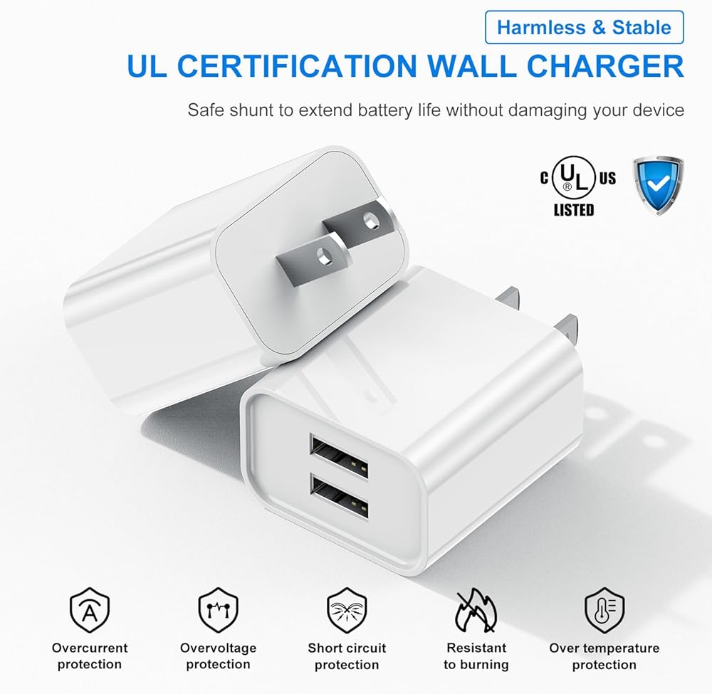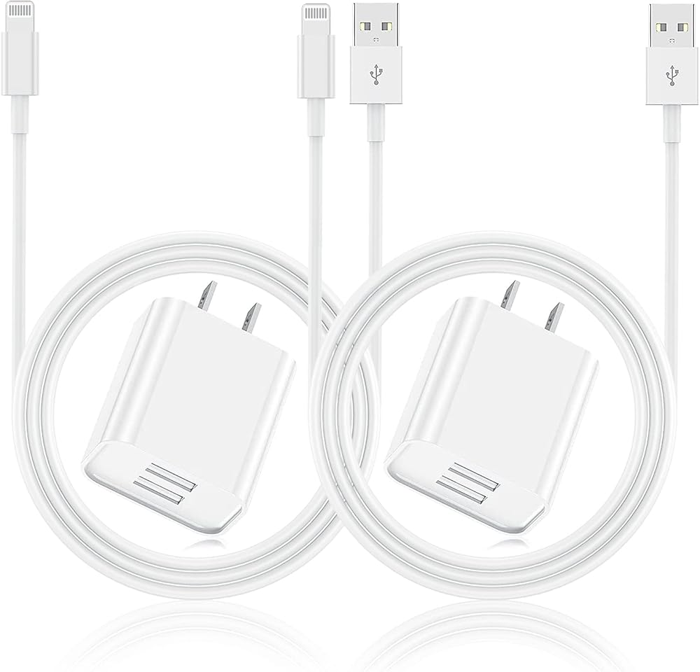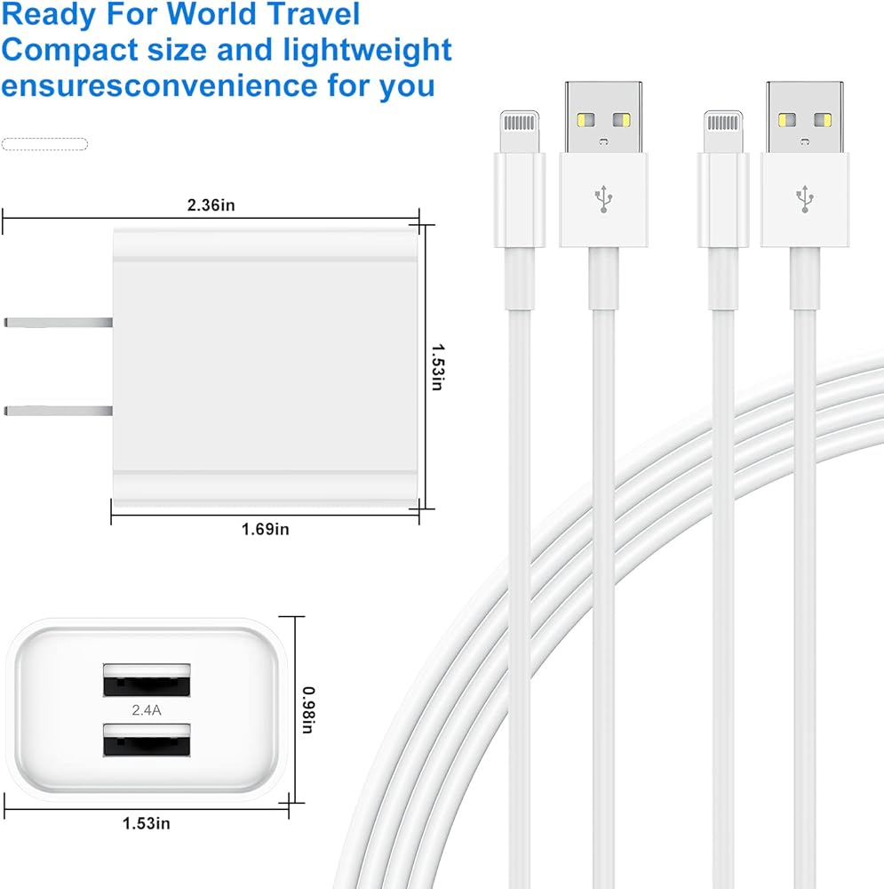 شاحن iPhone وتوصيل الجدار ، سلك كبل البرق 6 قدمًا مع مربع كتلة محول شحن USB مزدوج للمنفذ السريع لـ Apple iPhone 14 PRO MAX/13 PRO/12 MINI/11/XR/XS/XS MAX/8/7S PLUS/SE/5C/IPAD