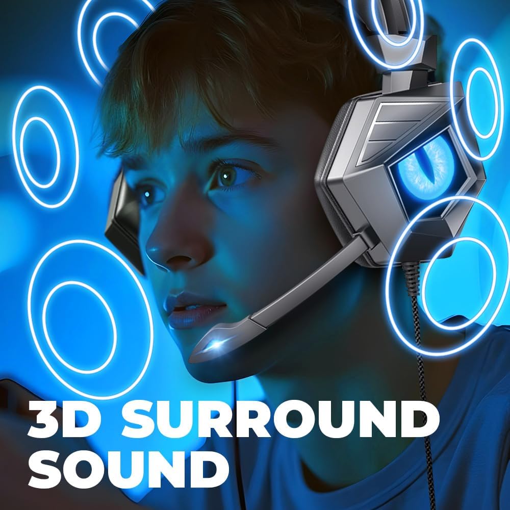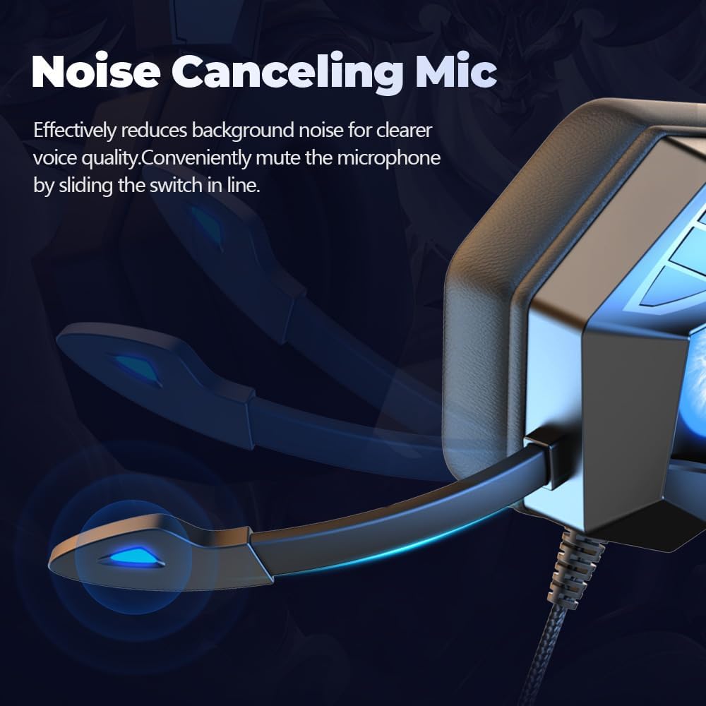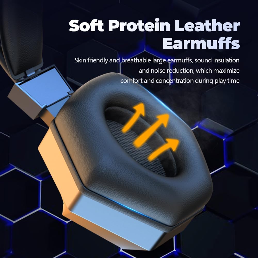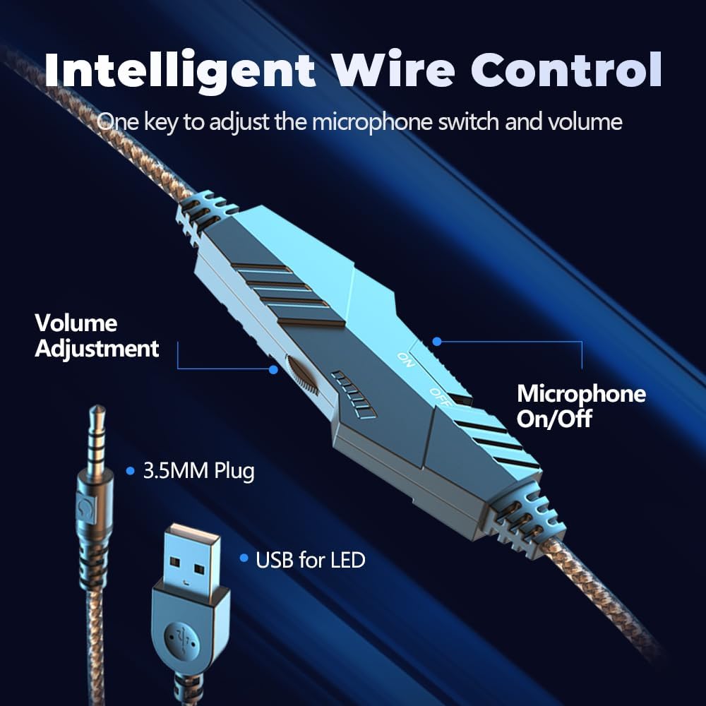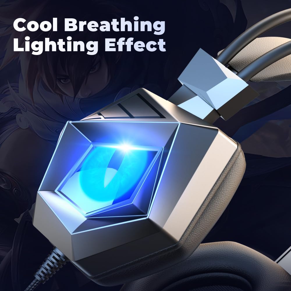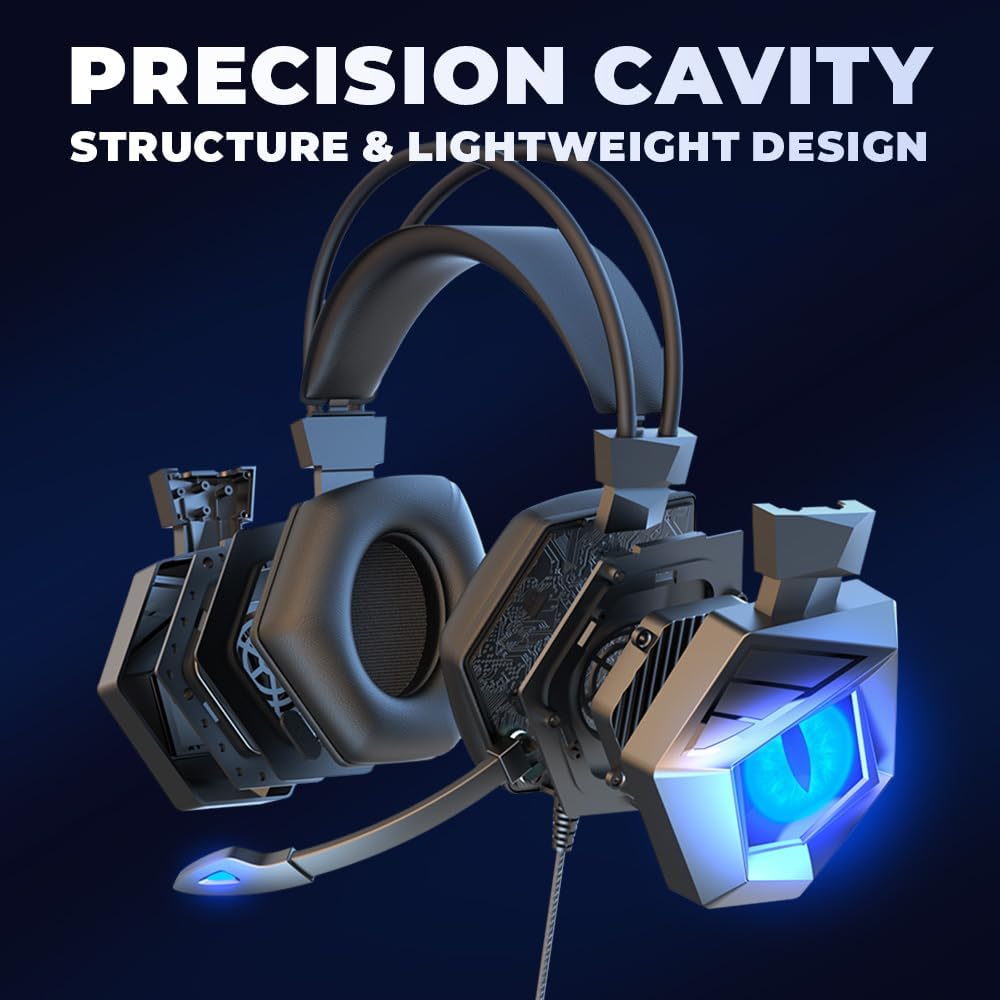 إطار خفيف الوزن مع خصائص بروتين ذاكرة عالية الجودة ووسادة الرأس المرنة ، والتي تم تخصيصها مصممة لارتداء وقت طويل ؛ لا تقلق ولا يشكو من الأذنين من عدة ساعات من الألعاب ؛ التصميم الرائع وضوء LED يعزز تجربة الألعاب الغامرة