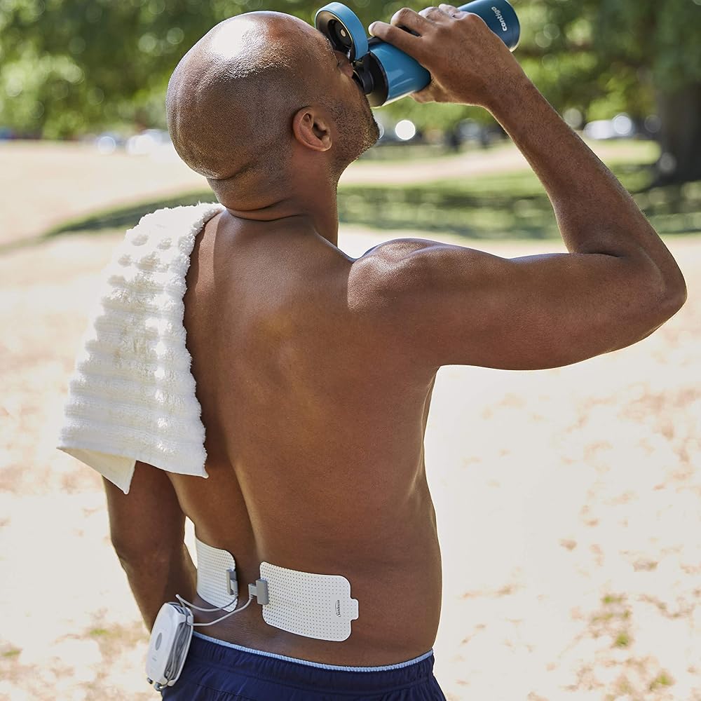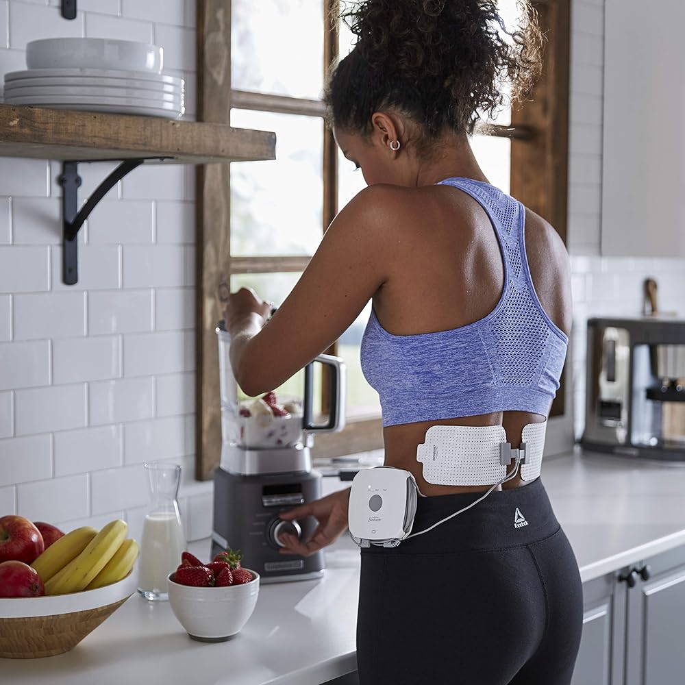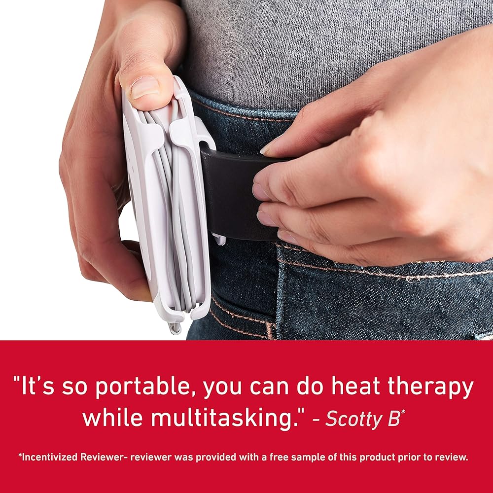 Hands free portability: Rechargeable control unit clips onto clothing for hands free use; Long cords easily access all areas of the body and provide mobility when you're on the go.Easy to use: (1) Fully charge control unit before use (2) Connect cords to control unit and patches and apply patches to body (3) Select heat setting