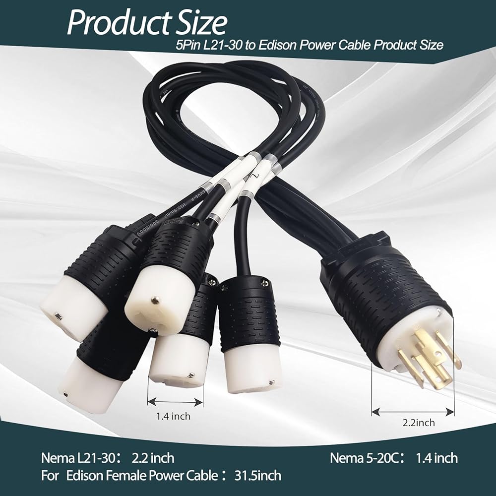 5pin L21-30 ذكر إلى كابل الطاقة الأنثوي Edison لـ Power Distro ، L21-30 Power Distro Cord قابلة للتطبيق على الإضاءة/المرحلة/الصوت/DJ ، كابل توزيعات الطاقة 3.5 قدم وتوصيله بمنتج مؤهل UL