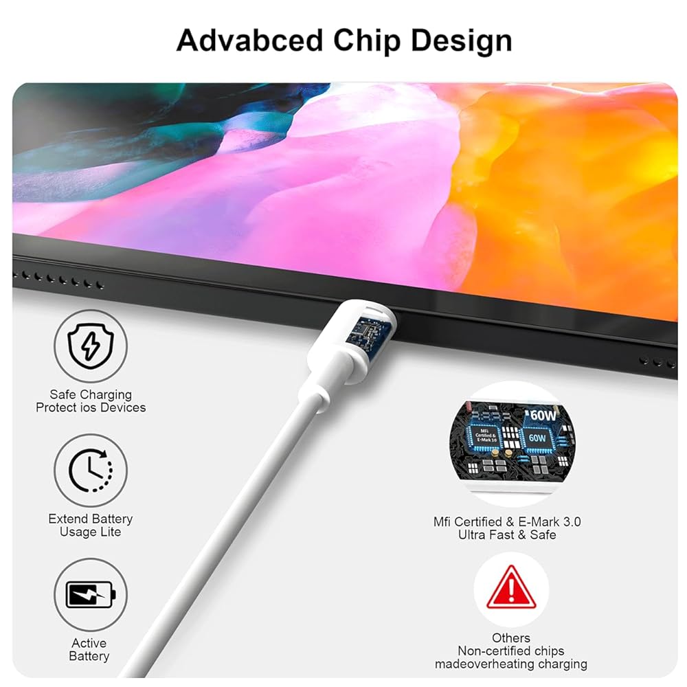 【آمنة وموثوقة】: USB C الحبل الذي يتبنى رقاقة IC التي تمت ترقيتها 2025 ، فإنها تتعرف بذكاء على الجهاز وتحسين المخرجات الحالية ، والتي تتميز بالزيادة والارتدادات الساخرة والكراهية الزائدة وحماية الدائرة القصيرة. تضمن المكونات المعتمدة أداءً مستقرًا لأجهزة Apple عالية القيمة.