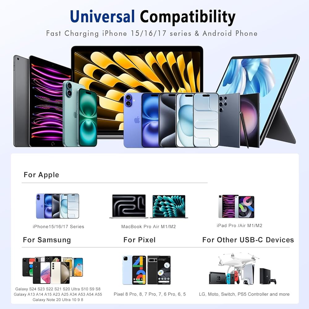 【مناسب لجميع أجهزة C-Port】 يوفر كبل USB-C إلى USB-C شحن عالي السرعة للهواتف الذكية المتوافقة مع النوع C ، وأجهزة الكمبيوتر المحمولة ، والهواتف ، والأجهزة اللوحية ، بغض النظر عن الجهاز الذي تريد شحنه ، يمكن القيام به بشكل أكثر فعالية ، و Macbook Air 2018 ، و Macbook Air 2018 و Macbook Air 2018 و Macbook Air 2018 و Macbook Air. في وقت متأخر ، لصالح iPad Pro 12.9 بوصة/6th/5/4/4/3rd ، لجهاز iPad Air 5th/4th/Mini 6/iPad 10 ، لـ Samsung Galaxy S25/S24/S23/S22/S21/S20 Ultra ، Google Pixel 9/8/6/5 ، Moto ،