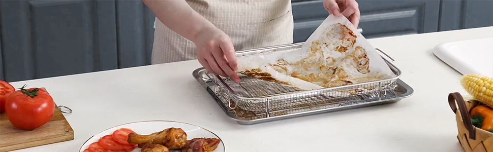 تقليل الفوضى في الفرن: يمكن لمقلاة الهواء التي تحتها أن تصطاد دهنيًا وفتاتًا بحيث لا يفسد الفرن. يأتي أيضًا مع 30 ورقة من ورقة شهادة جامعية غير لاصقة