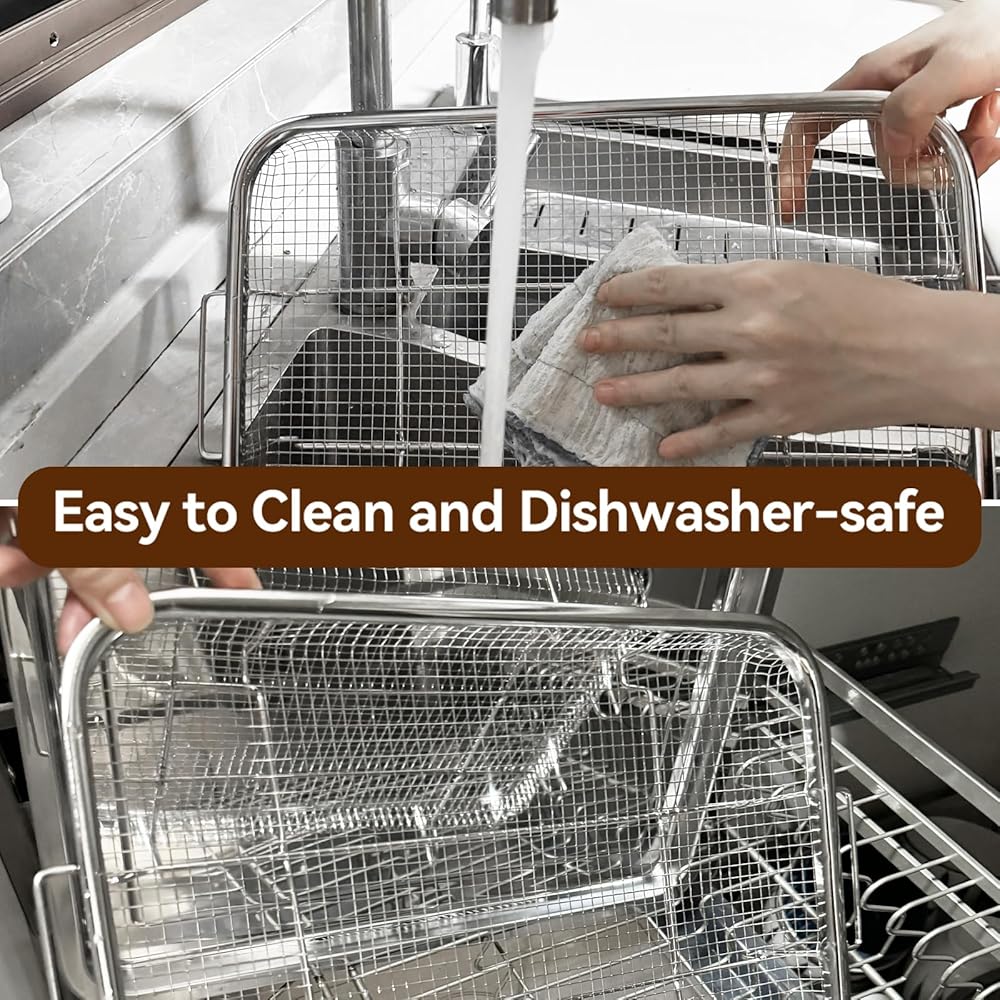 من السهل التنظيف والآمن آمنًا: يمكنك وضع سلة مقلاة الهواء في فرن في غسالة الصحون لتوفير الوقت والجهد ، أو تنظيفها باليد. ما عليك سوى نقع الماء الساخن واستخدم إسفنجة لمسح بقايا الطعام