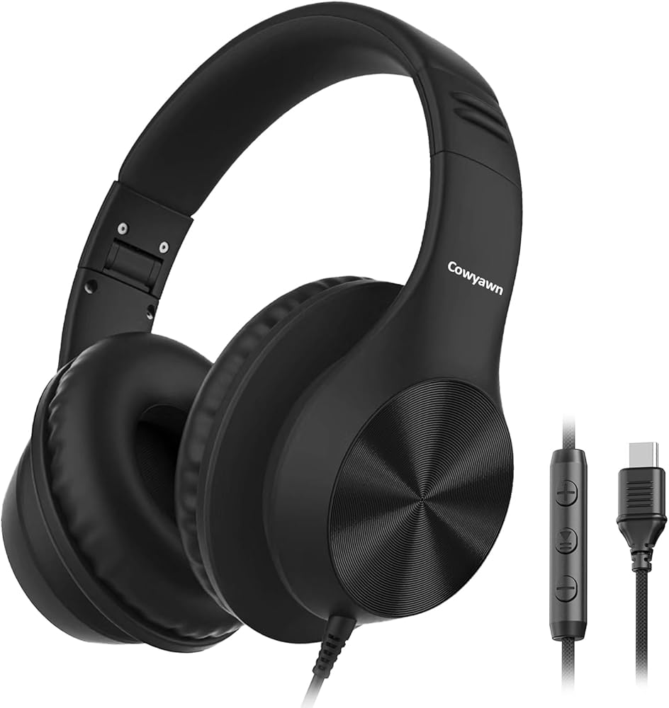سماعات USB C السلكية ، سماعات USB USB-C فوق الأذن سلكية مع الميكروفون ، التحكم في مستوى الصوت ، صوت استريو HD ، سماعات USB من النوع C القابل للطي للبالغين/المراهقين/iPhone/Chromebook/كمبيوتر محمول/كمبيوتر ، أسود