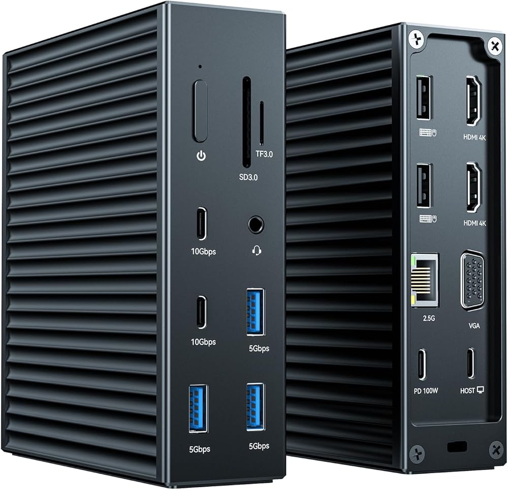 【16-in-1 محطة الإرساء ، شاشة مزدوجة】 : : مع محول USB C Hub ، يمكنك بسهولة تمديد الكمبيوتر المحمول الخاص بك ، يمكنك الحصول على 2*HDMI4K@60Hz ، VGA ، 2*USB C 10GBPS ، 5*USB-A ، SD/TFCard 1000 ميجابت في الثانية/100 ميجابت في الثانية/10 ميجابت في الثانية ، والاستخدام الخالي من السائق