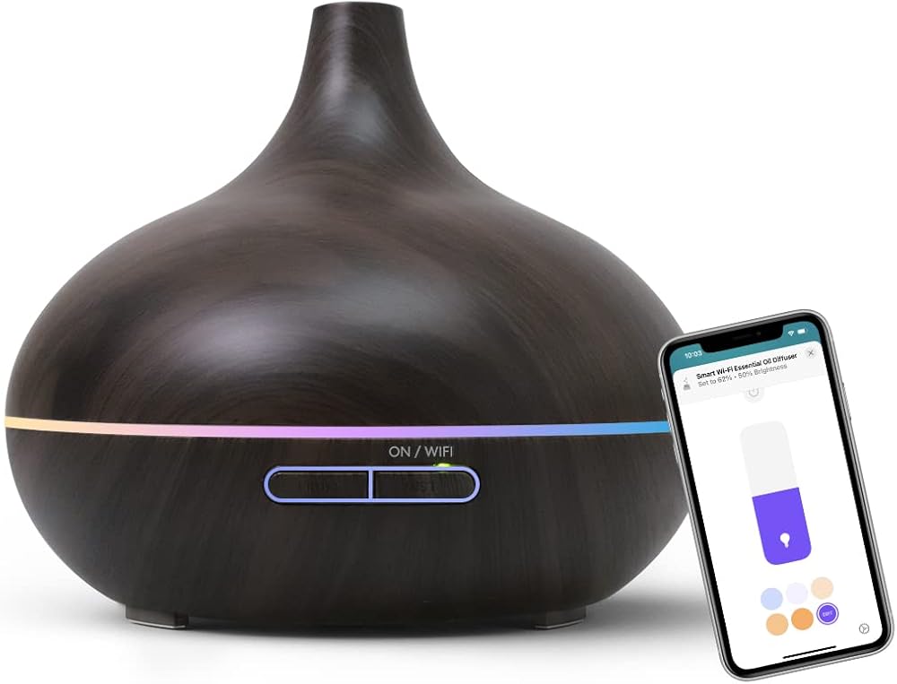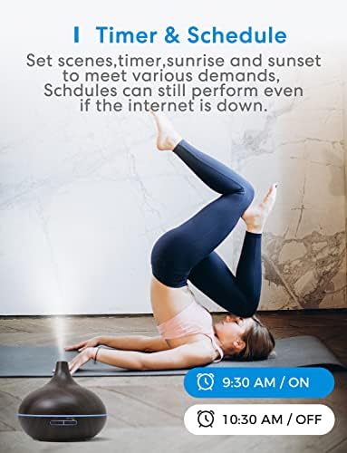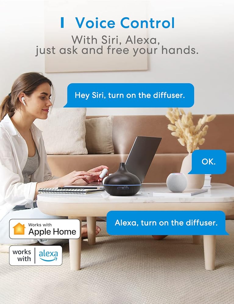 موزع روائح الزيوت العطرية الذكي واي فاي من ميروس يعمل مع Apple HomeKit وAlexa، موزع روائح العلاج العطري بالموجات فوق الصوتية ومرطب الرذاذ مع جهاز التحكم عن بعد بالصوت والتطبيق، والجدول الزمني والمؤقت، وإضاءة RGB