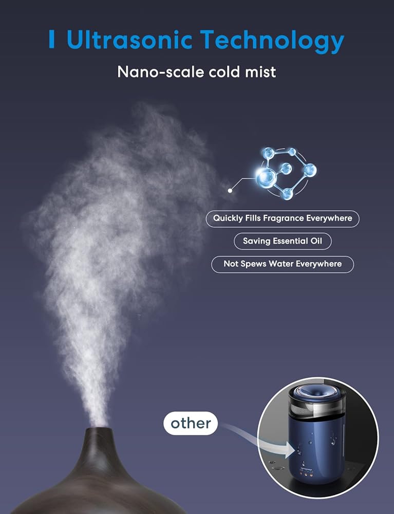 【مرطب ناشر للرائحة العطرية بالموجات فوق الصوتية】موزع روائح الغرفة من ميروس، باستخدام تقنية رذاذ مسامية دقيقة مطورة خاصة، يعمل على إذابة جزيئات الماء إلى رذاذ بارد بمقياس النانو لإطلاق العطر وملء بسرعة في كل مكان حتى في غرفة كبيرة. تساعد تقنية الانحلال الدقيقة للزيوت العطرية الحديثة على ترطيب الهواء لبشرتك بشكل أفضل وتجنب فقدان رطوبة البشرة.