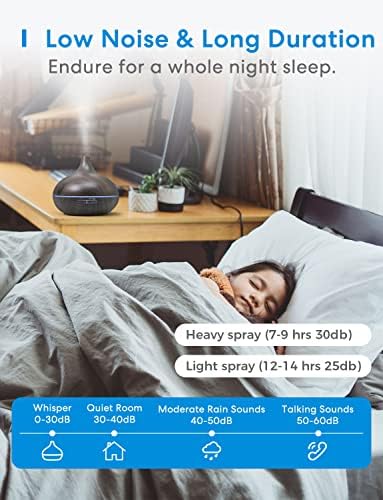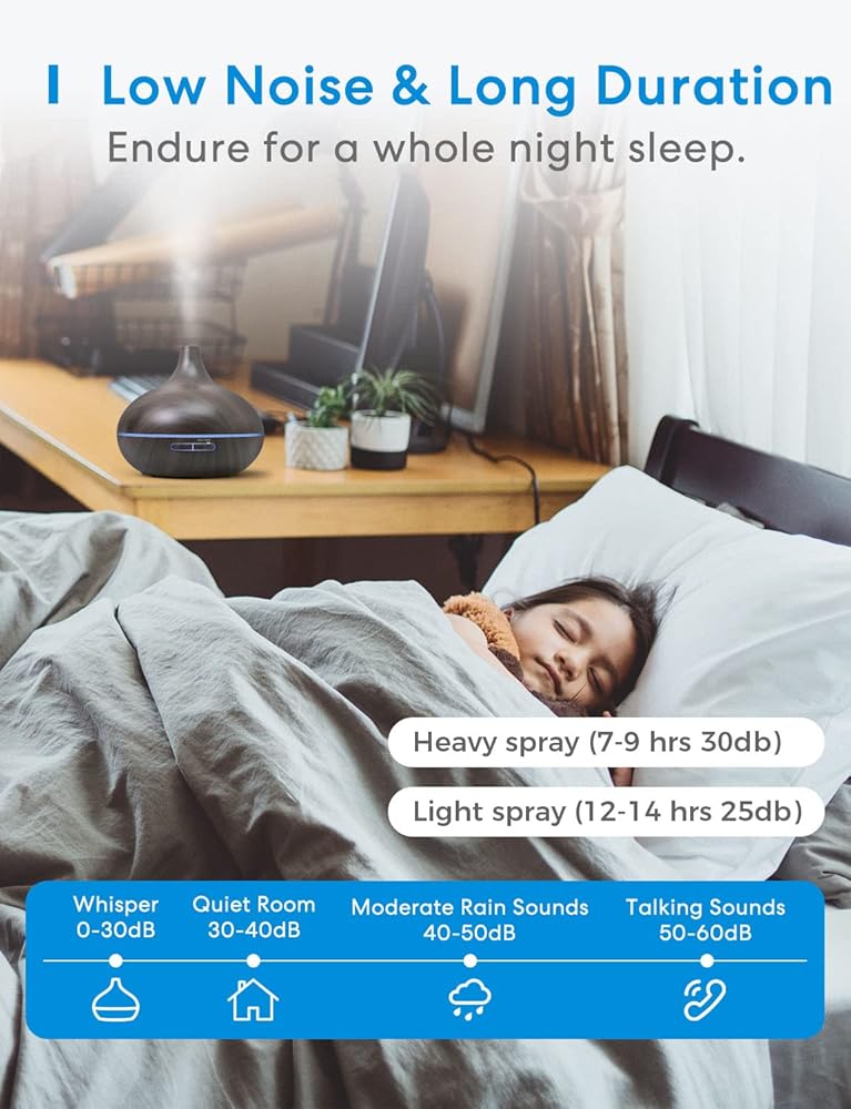 【تأكد من سلامتك】 موزع الروائح العطرية بالموجات فوق الصوتية هذا مصنوع من مادة خالية من مادة BPA، وهو آمن للأطفال الرضع والنساء الحوامل. وسيتم إيقاف تشغيل موزع الزيوت العطرية تلقائيًا بمجرد نفاد الماء، لتجنب ارتفاع درجة الحرارة.