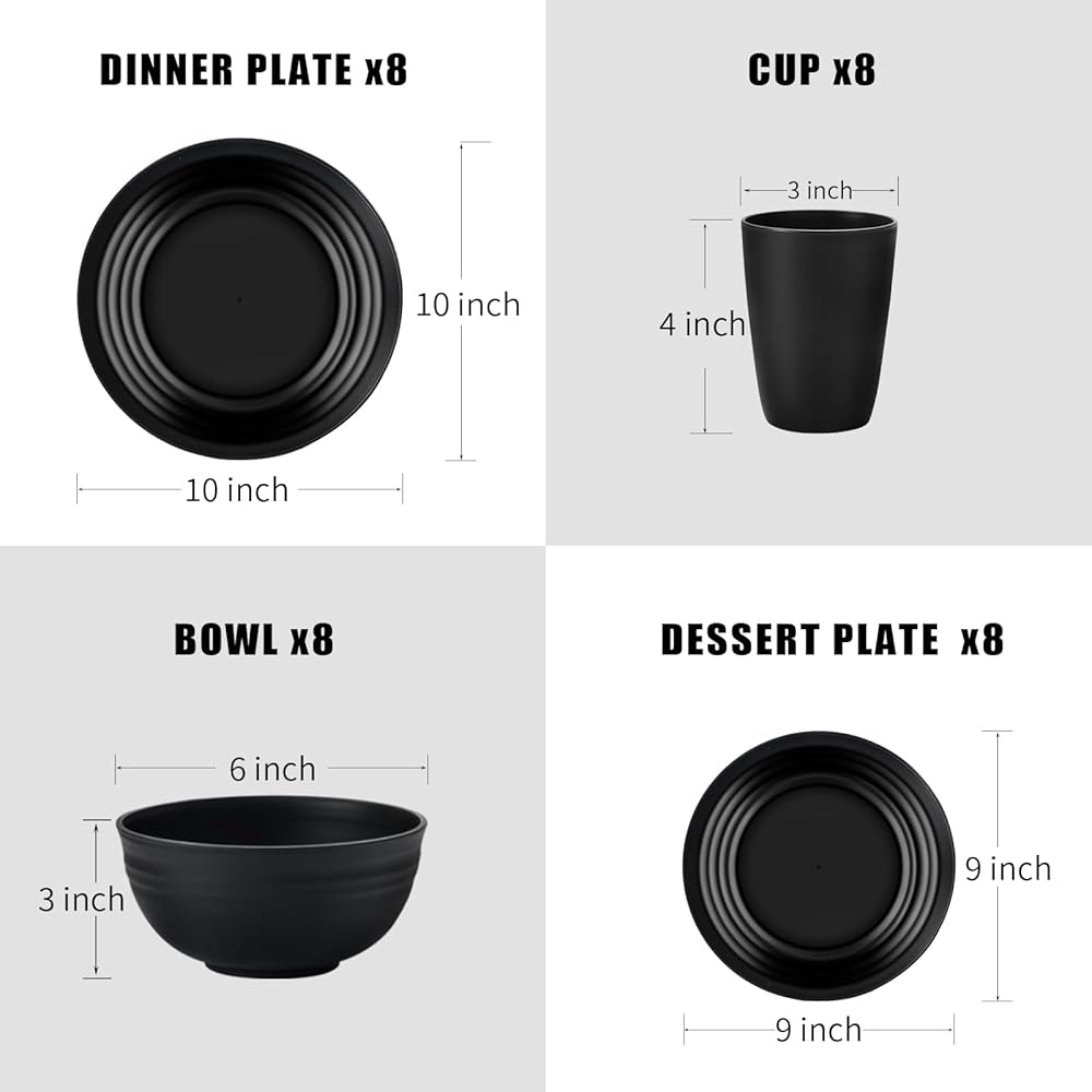 مجموعة طبقات من 32 قطعة - تشمل أطباق المطبخ والأوعية ، 8 لوحات عشاء ، 8 لوحات سلطة ، 8 أوعية و 8 أكواب. مثالي للوجبات اليومية أو التجمعات
