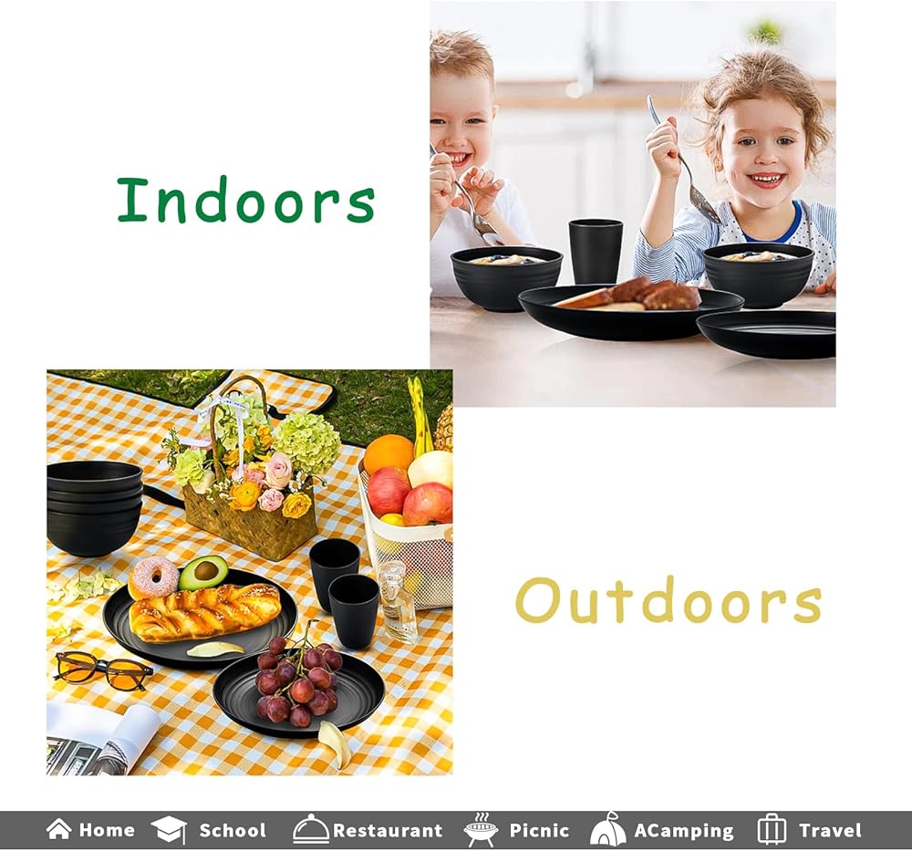 أدوات وجبات القمح غير القابلة للكسر مجموعة للأطفال - أطباق مقاومة للتشويش والأوعية والكؤوس والأوعية العميقة والألواح المليئة بمنع الانسكابات وجعل الطعام أسهل للأطفال (بدون حواف حادة!) مثالية للأطفال الصغار والعائلات النشطة.
