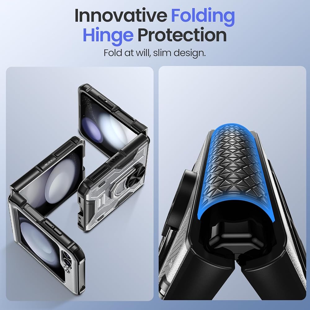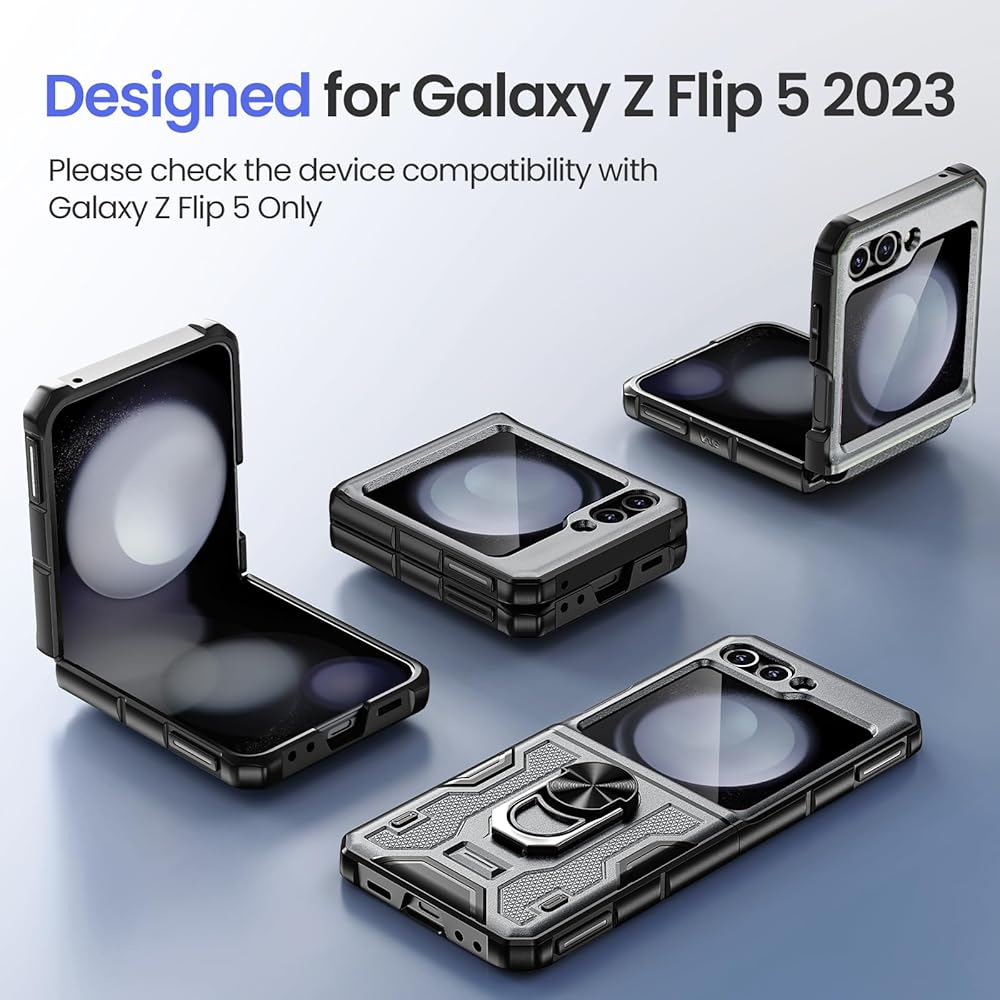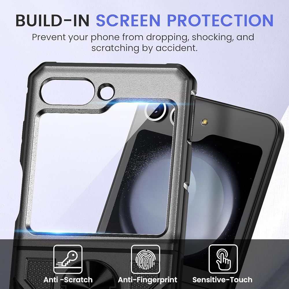 【360 درجة حامل حلقة الدوران:】 علبة Galaxy Flip 5 مع وظيفة Kickstand متعددة الزوايا. يمكنك ضبط الزاوية بنفسك للمشاهدة أو العمل ، والتي يمكن أن تجلب لك تجربة عرض فريدة من نوعها.