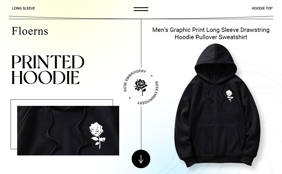 - تطريز على شكل وردة، أكمام طويلة، غطاء رأس برباط، جيب أمامي، سويت شيرت علوي