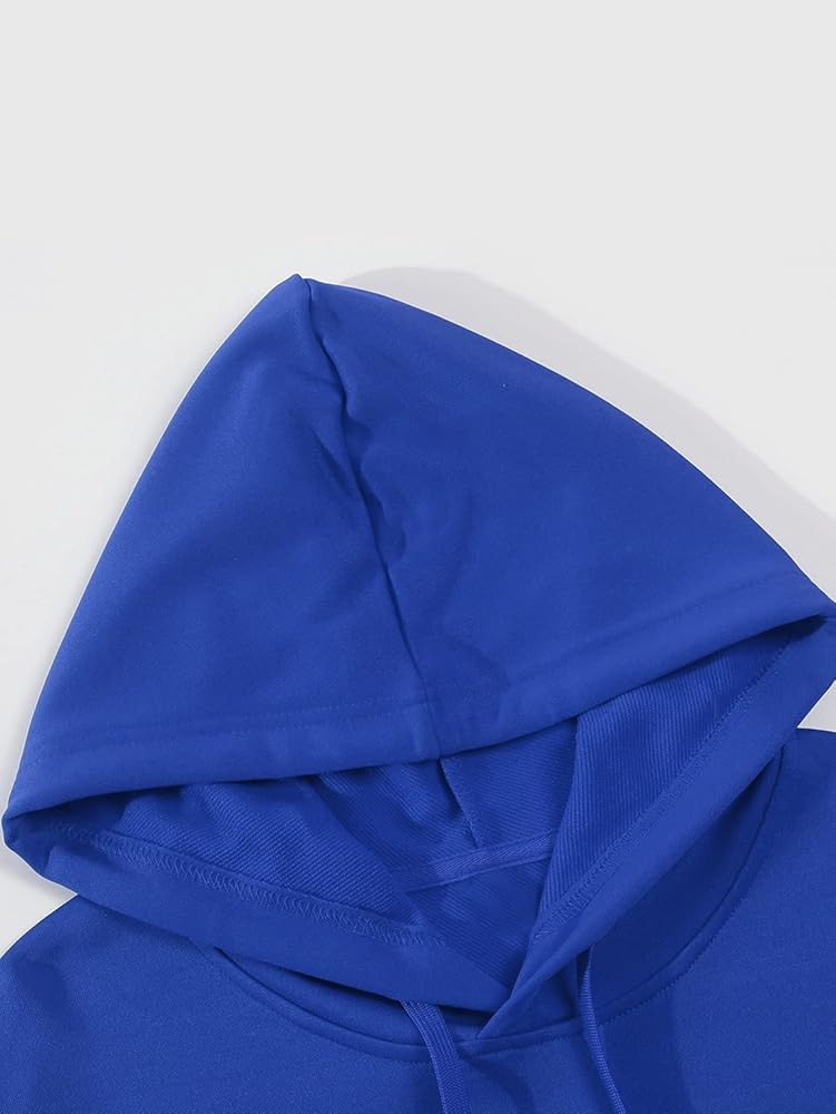 سويت شيرت بغطاء للرأس بأكمام طويلة وطبعة جرافيك للرجال من Floerns، أزرق ملكي S