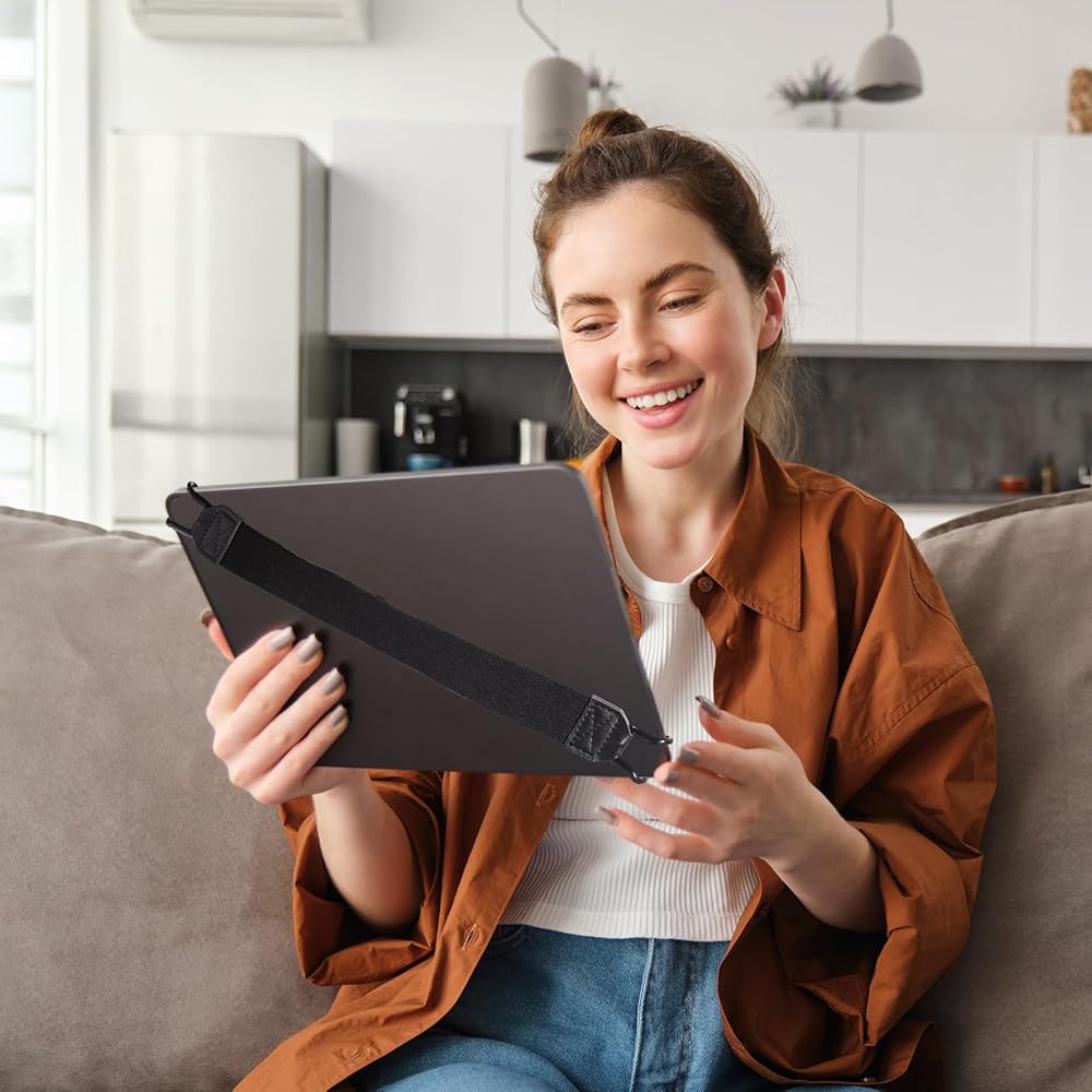 Easy to Use: Just snap the two buckles on the edge respectively to avoid accidentally dropping, or remove them conveniently. This tablet strap is compatible with devices with slim cases or slightly thicker builds with a case, firmly attached to your device, preventing slippage