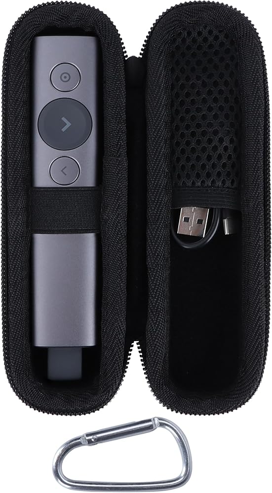 • تصميم مريح: تصميم معقول وعملي لتخزين Logitech Wireless Proprecter R800 PowerPoint الفرس والملحقات - الجزء العلوي من المربع يحتوي على حقيبة شبكية ، يمكنك تخزين المزيد من الملحقات ، والغطاء السفلي مصمم لتخزين مقدم العرض ولديه سلك مرن للإضافة ، ويأتي أيضًا مع مقبض ، وهو محمول عند الخروج عند الخروج