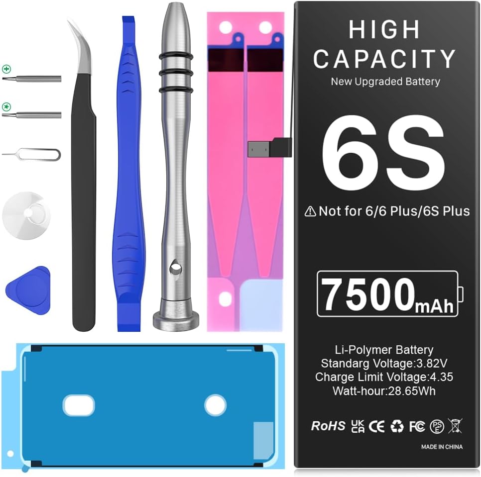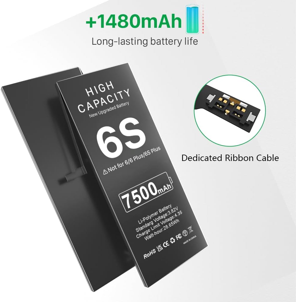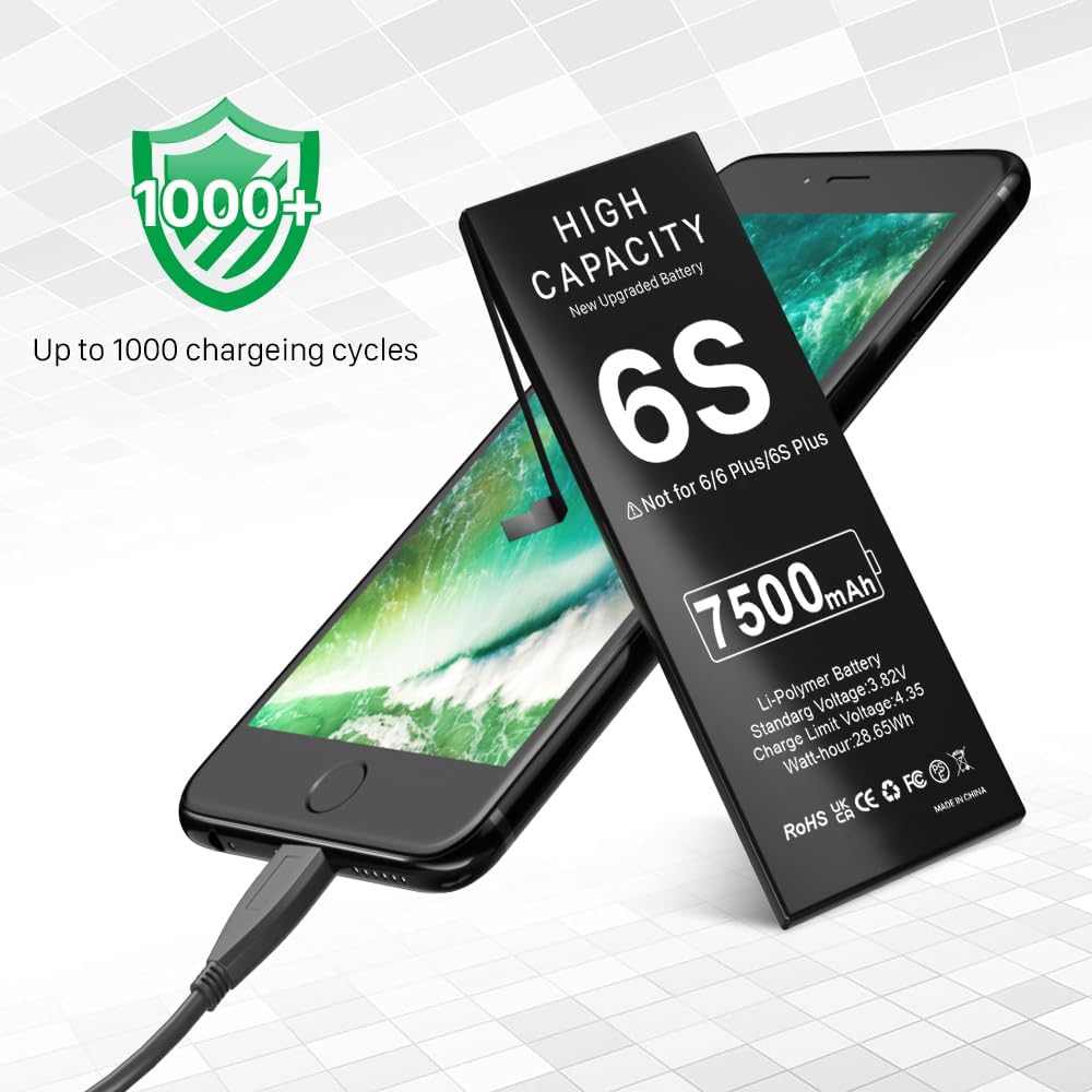 بطارية 7500 مللي أمبير في الساعة لجهاز iPhone 6S (إصدار جديد تم ترقيته) ، وبطارية بديلة للبديل عن السعة العالية مع مجموعات أدوات الاستبدال المهنية