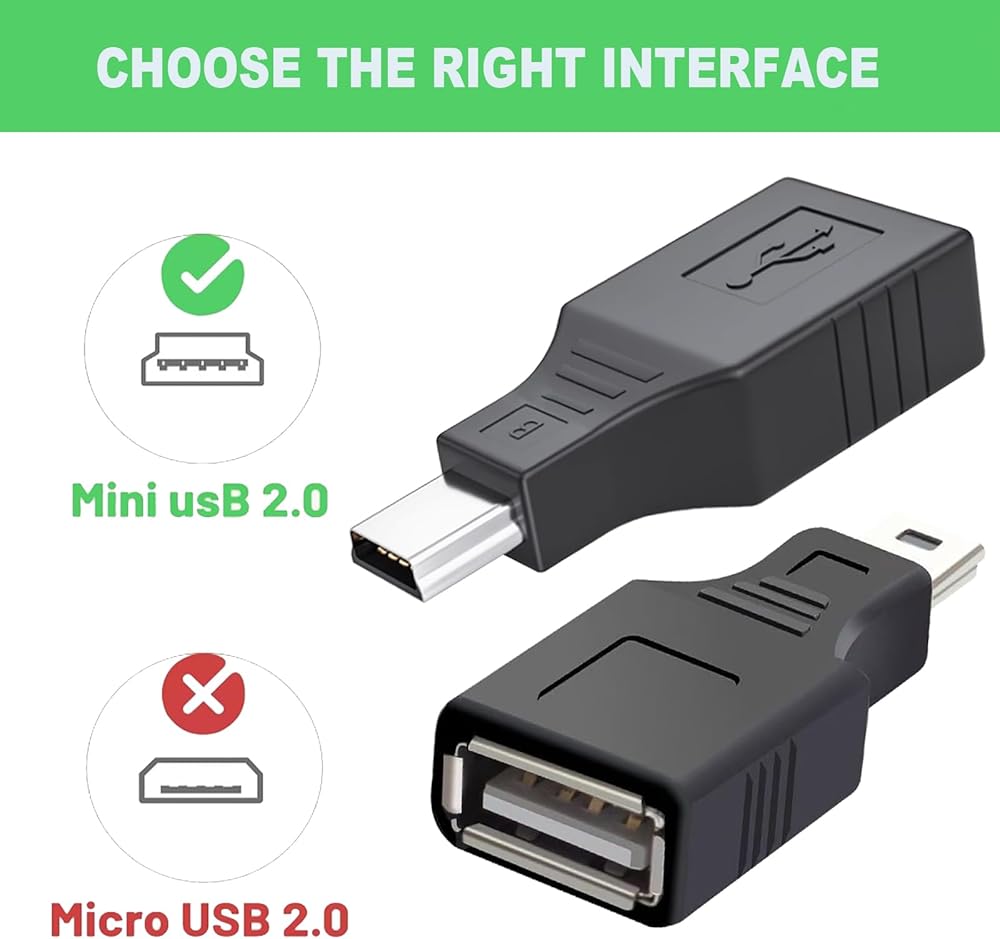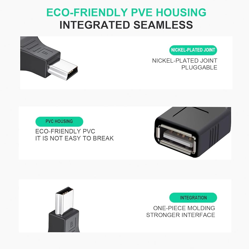 VERSATILE COMPATIBILITY: Converts USB Type A Female to Mini USB 5-Pin Male, perfect for connecting cameras, printers, audio devices, and other Mini USB peripherals