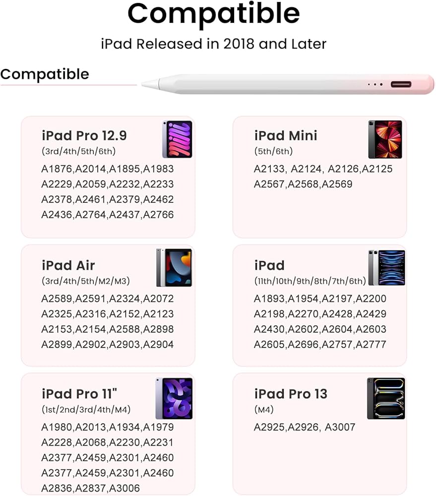 • Compatible with 2018-2025 iPad Models: Only compatible with iPad 11th/10th/9th/8th/7th/6th Gen, iPad Pro 11"/12.9"/M4, iPad Mini 6th/5th Gen, iPad Air 3rd/4th/5th/M2/M3 Gen.(Please go to [Setting>General>About] to confirm your iPad's model name before placing order. Not Compatible with other ipad models or any other brand touchscreen devices)