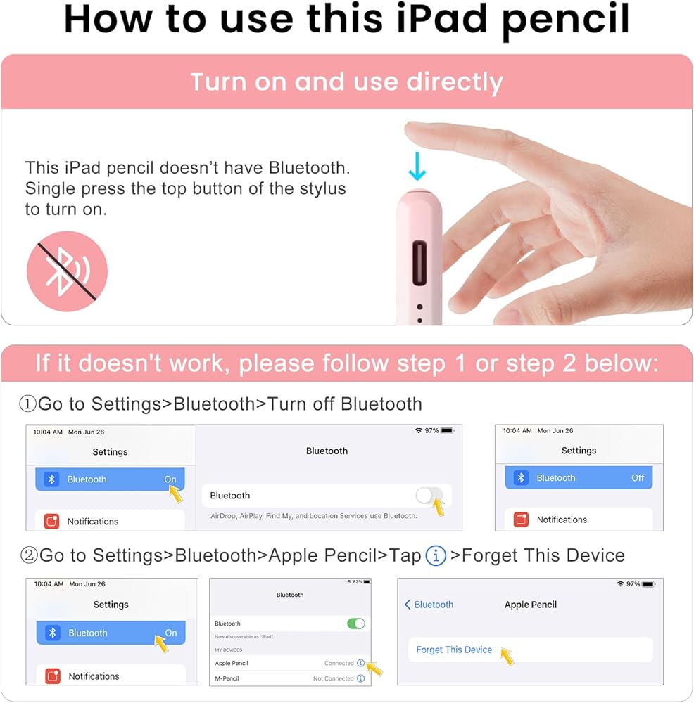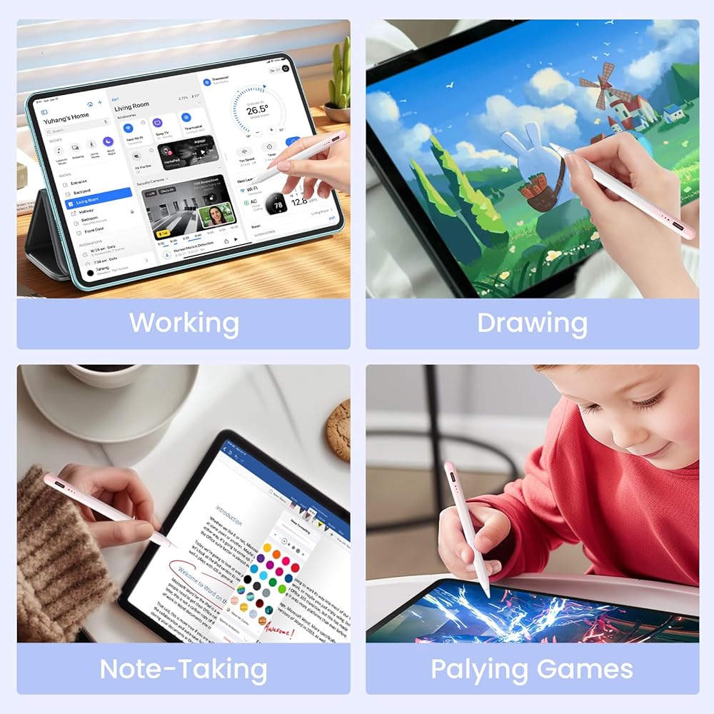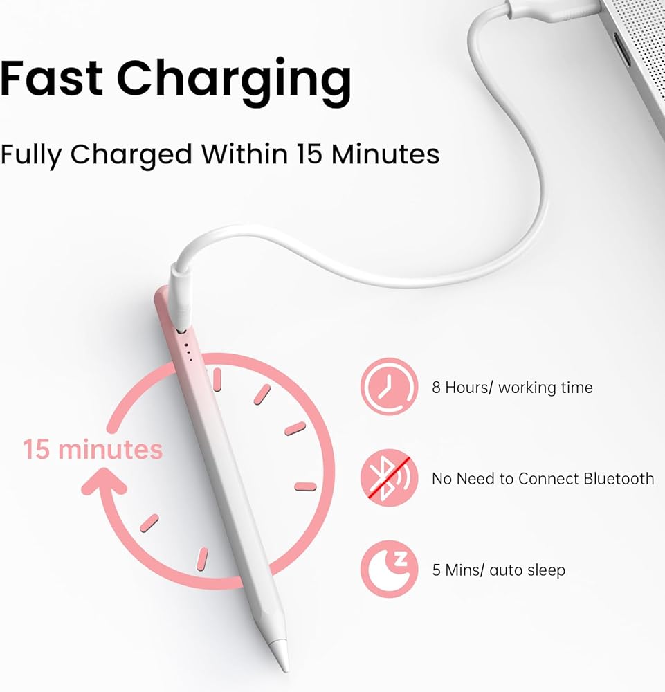 • 15-Min Quick Charge, 8-Hour Runtime: No waiting needed! Just 15 minutes of charging delivers 8 hours of continuous use. The iPad pencil automatically sleeps after 5 minutes of inactivity and instantly wakes when picked up. Ideal for studying, working, or creating - enjoy uninterrupted writing and drawing without constant recharging.