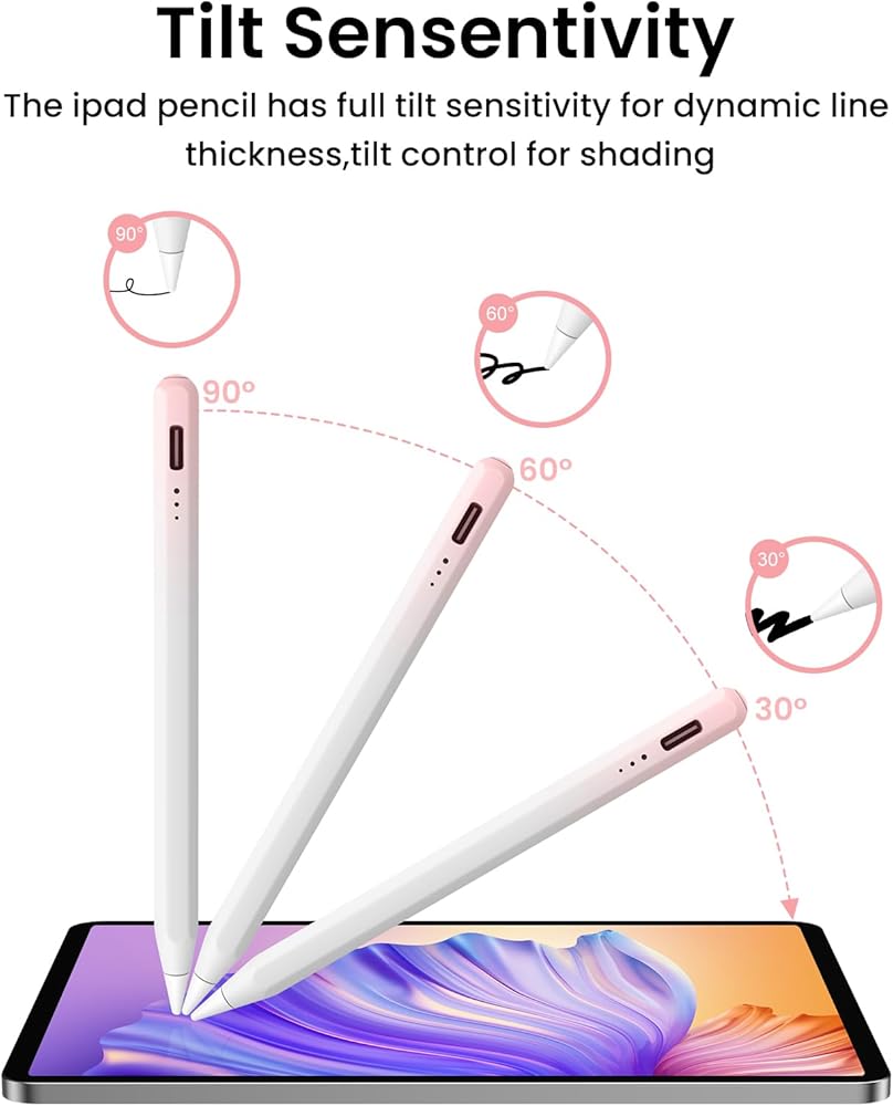 القلم القلم للجيل العاشر من الجيل العاشر ، من النوع C ، مع رفض النخيل وحساسية الميل ، متوافق مع Apple Pencil 2018-2025 ، Mini Stylus مناسبة للبالغين وربطة الأطفال