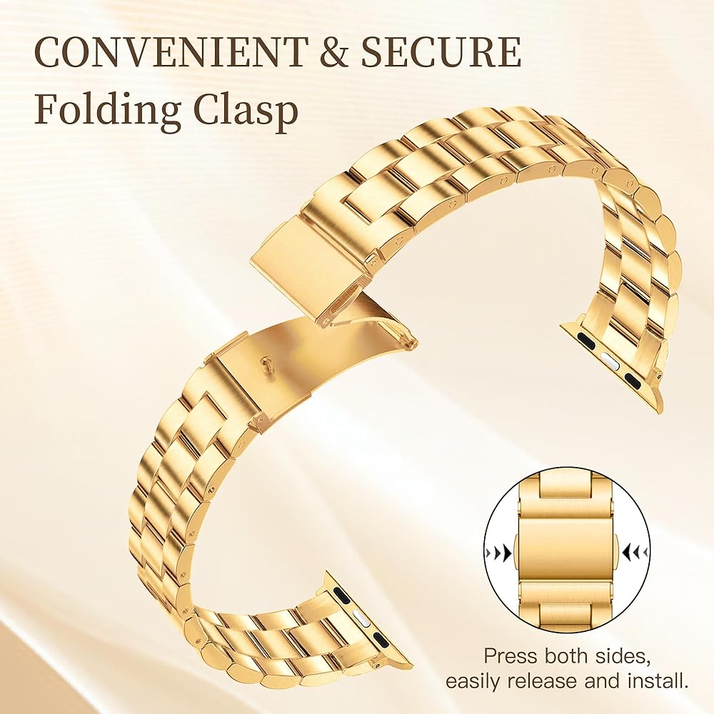 ★ متينة ومريحة ★ مصنوعة من الفولاذ المقاوم للصدأ الرائع ، فإن شريط ساعة Apple Gold مع العلبة متينة للغاية وسطحها ناعم للغاية ، وهو مريح للغاية للارتداء. إذا كنت ترغب في الحصول على مزاج جيد لهذا اليوم ، فانتقل إلى هذا النطاق العالي من الفولاذ المقاوم للصدأ.