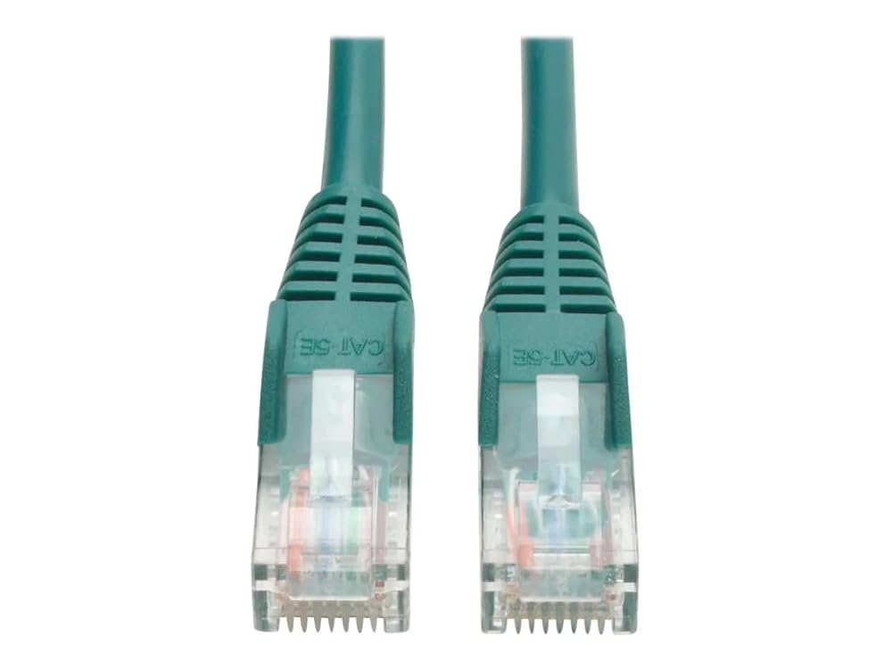 Tripp Lite Eaton Series N001-015-GN Cat5e Ethernet Patch Cable 15 ft Green delivers high performance reliable Gigabit connectivity with 350 MHz bandwidth for data streaming gaming video and voice PoE applications. This unshielded twisted pair UTP patch cord features molded snagless RJ45 male to male connectors with integrated strain relief for easy installation in patch panels routers switches and wall plates. Compliant with IEEE 802.3ba and RoHS standards this stranded cable supports PoE PoE Plus and PoE++ powering IP cameras wireless access points VoIP phones and other network devices. The durable PVC jacket offers flexibility tangle free management and protection against abrasion. Ideal for home office small business data centers structured cabling server racks and Cloud Care Pre Configured Bundle Eligible projects. Keywords Cat5e patch cable Gigabit Ethernet cable PoE LAN cord RJ45 patch cord UTP network cable 350 MHz Ethernet cable green Cat5 cable Ethernet cord network accessory structured cabling gaming network cloud care bundle eligible PoE cable 15 ft Cat5e cable