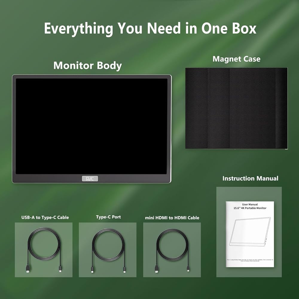 FHD 1080P Brilliant Display: FMC portable monitor features a 15.6-inch FHD 1080P 1920×1080 resolution IPS matte screen with a 1000:1 contrast ratio for vibrant colors, high brightness and detailed images, making it perfect for office and multitasking.