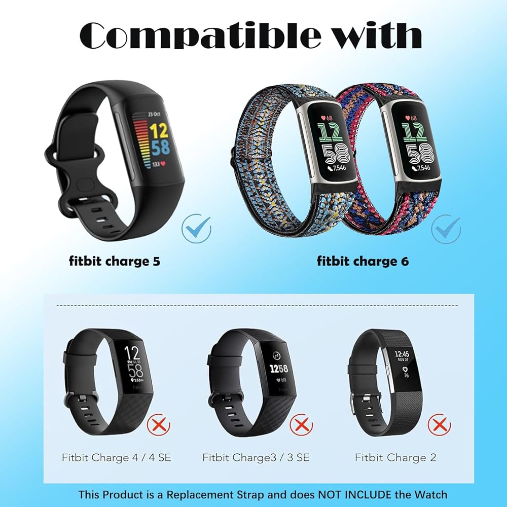 • [Applicable Model] Fitbit charge 6/5 stretchy loop watch bands for Women Men, Replacement Bands Compatible with Fitbit charge 6/5 only, 【NOT Support charge 3/4】Please kindly make sure the model of your smartwatch before place the order.