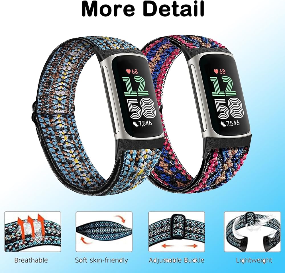• [High Quality & Exquisite Craftsmanship] Our fitbit charge 6 bands made of stretchy weave nylon which is skin-friendly, soft & flexible, NO irritation or allergy on your skin. The breathable & lightweight feature allows more air flow and helps to keep your arm cool and comfortable. If it is dirty, wash it directly with soap and water.