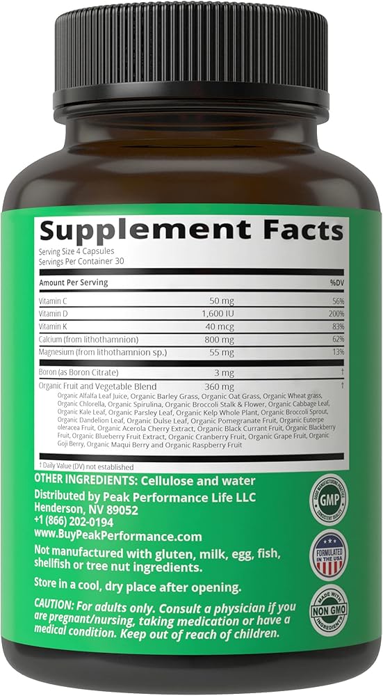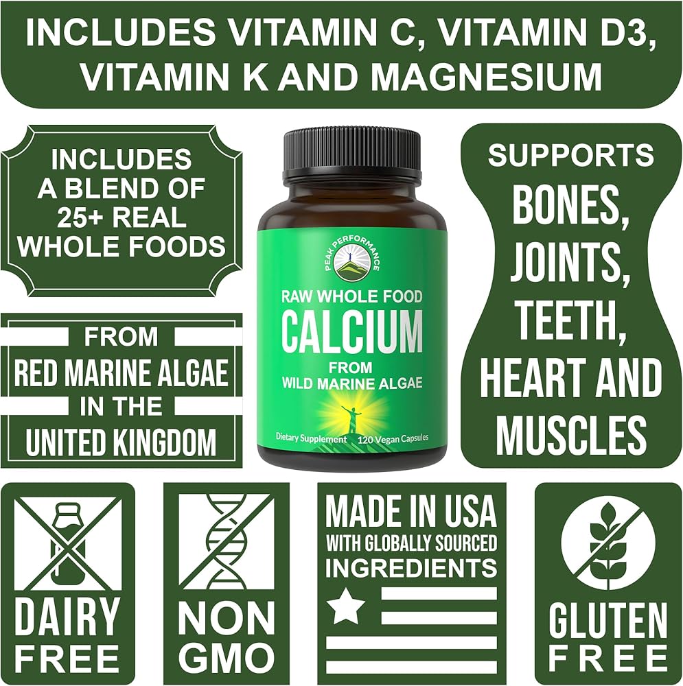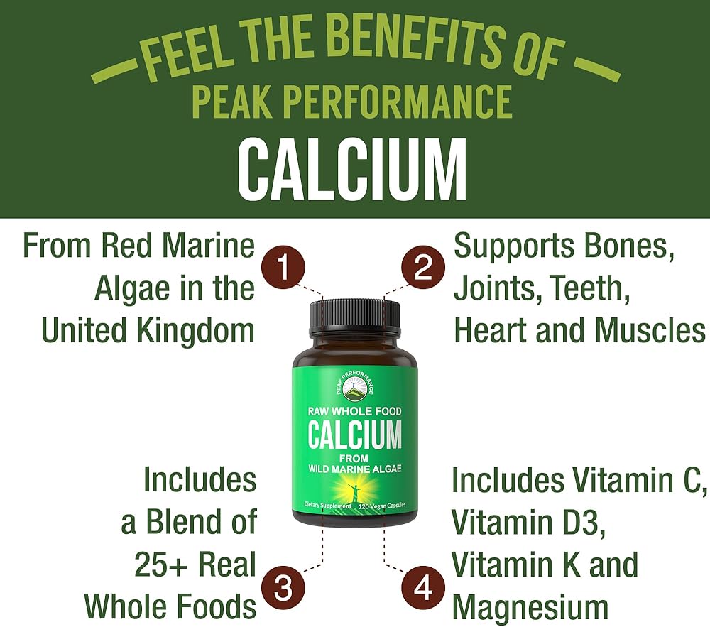 لا تنخدع بكبسولات الكالسيوم الرخيصة - فليس كل الكالسيوم متماثلًا! تستخدم معظم مكملات الكالسيوم تركيبات صناعية ومواد حشو. في Peak Performance، يُشتق الكالسيوم الخاص بنا من الطحالب البحرية الحمراء البرية (ليثوثامنيون) المزروعة بيئيًا في المملكة المتحدة. وهذا يوفر مصدرًا غنيًا بالكالسيوم الضروري للعظام والمفاصل والقلب والعضلات.*