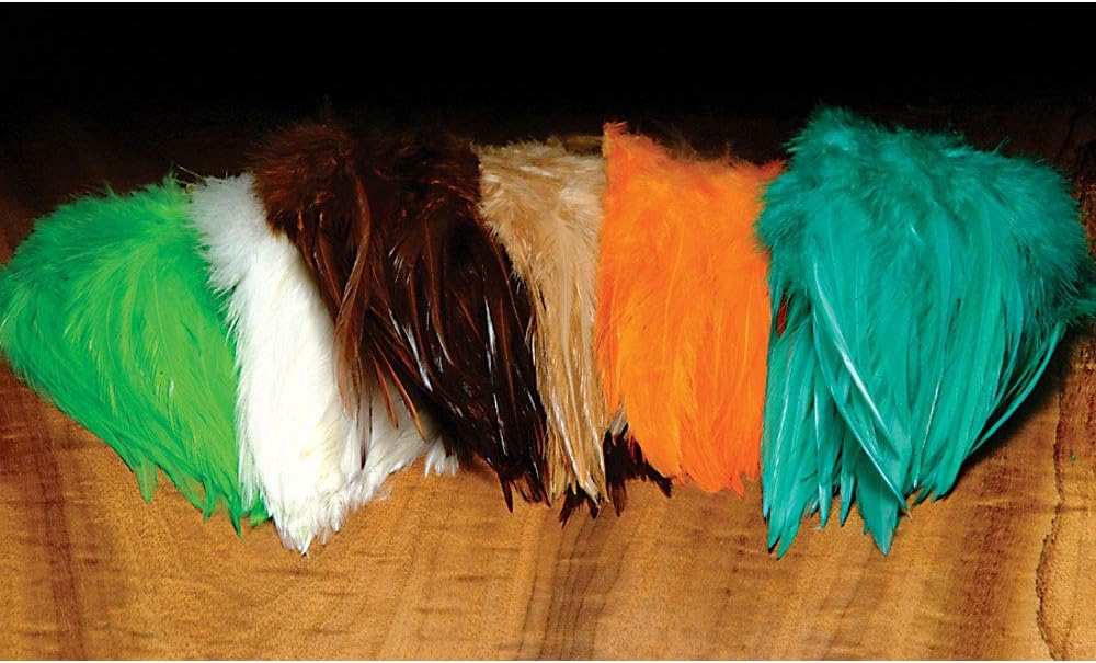 These saddles are mainstay for all fly tyers. These saddle hackle feathers are used for tails, wings, throats collars and palmered hackles on larger flies. They are versatile and the colors are sharp and true. Premium Quality, dyed from white, 5-7" length, 1/4 oz. packages. These are the finest hackle for tying average size steelhead and Atlantic salmon flies. They are also the favorite hackle for traditional streamer wings, saltwater and bass flies. The colors are shiny, bright and pure.