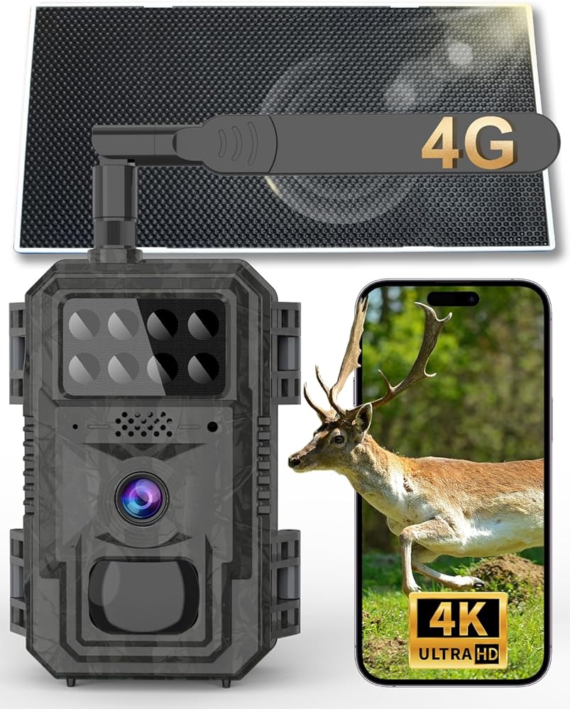 Vatony 4G Cellular Trail Camera-with 4K 48MP Wide Angle 120 Degree,Night Vision up to 100FT, Solar Powered Hunting Camera with SD Storage, IP68 Waterproof, Motion Activated Wildlife Camera