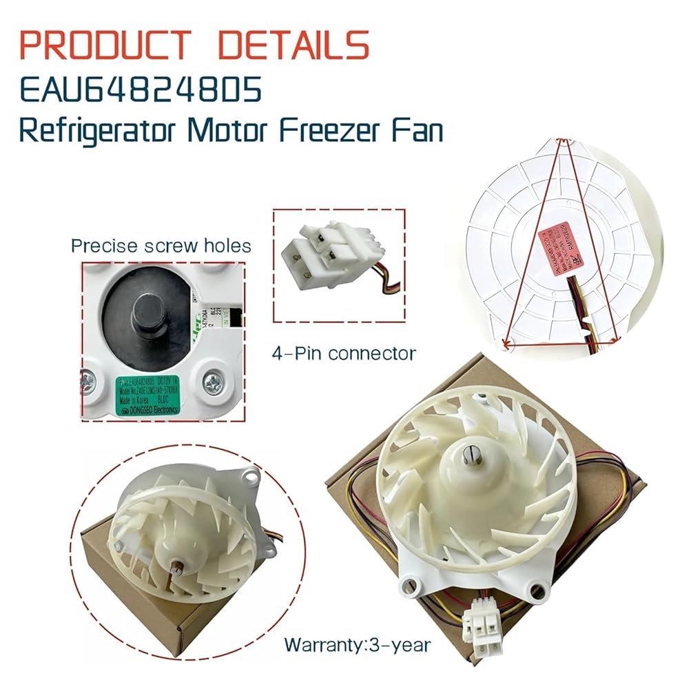 1Pcs EAU64824805 Refrigerator Evaporator Fan Motor for Refrigerator DC12V 1A Refrigerator Motor Freezer Fan Z40E12MS1A0-57K