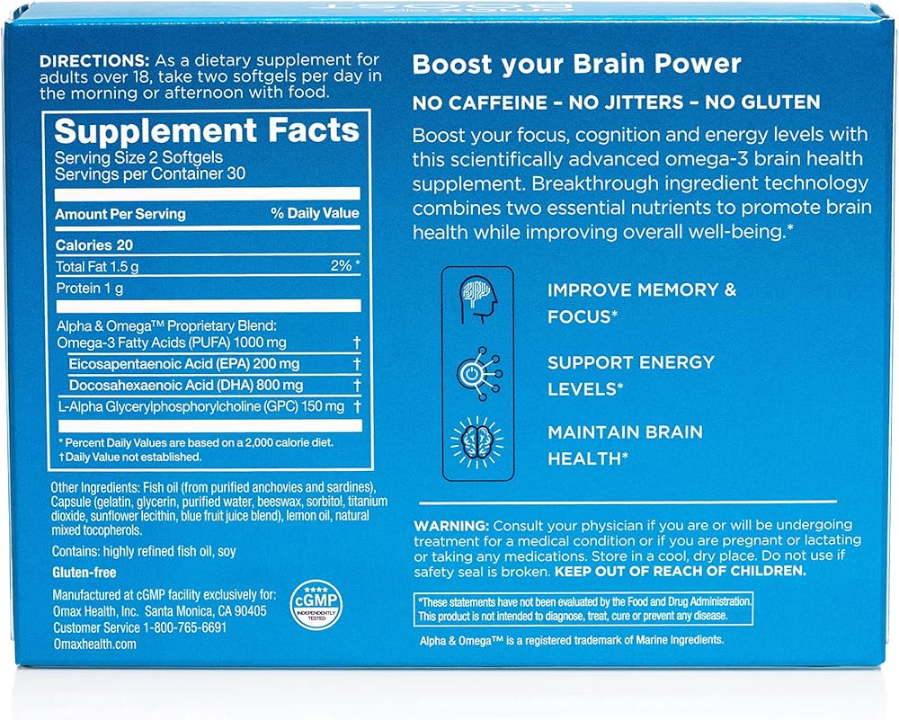 Omax Boost هو مكمل ثنائي المفعول لصحة الدماغ يعتمد على DHA والذي يعمل على تحسين التركيز والتركيز، ويقلل من ضباب الدماغ، ويدعم وظيفة الذاكرة، وصحة الدماغ على المدى الطويل والعافية العامة.