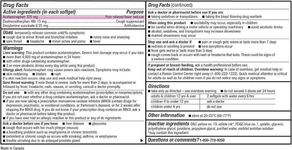 قارنه بالمكونات النشطة الموجودة في Vicks Liquicaps. يعمل GoodSense NightTime Cold & Flu Multi Symptom Relief على تخفيف أعراض البرد مؤقتًا مثل السعال وسيلان الأنف والعطس حتى تتمكن من الراحة.