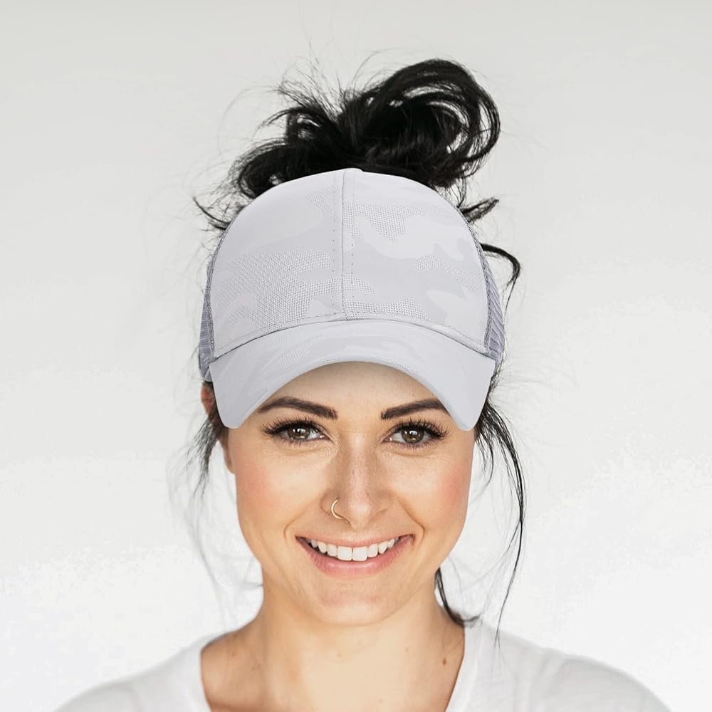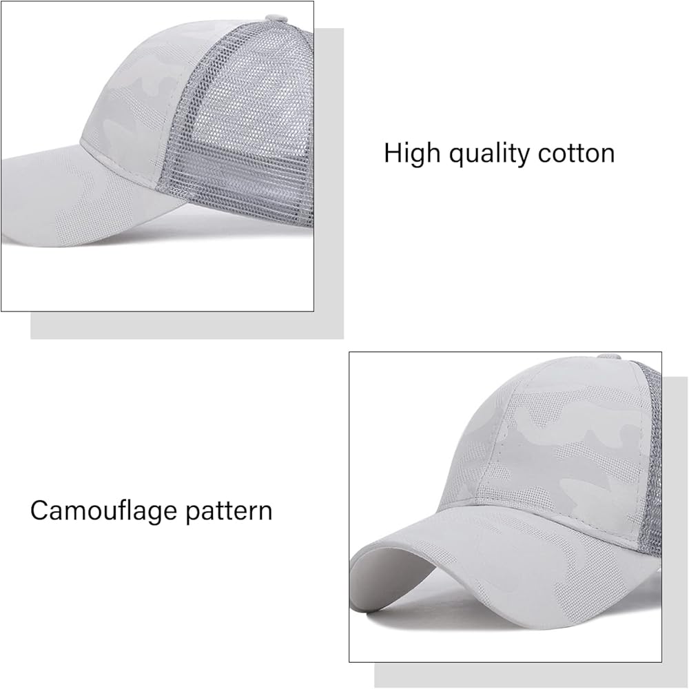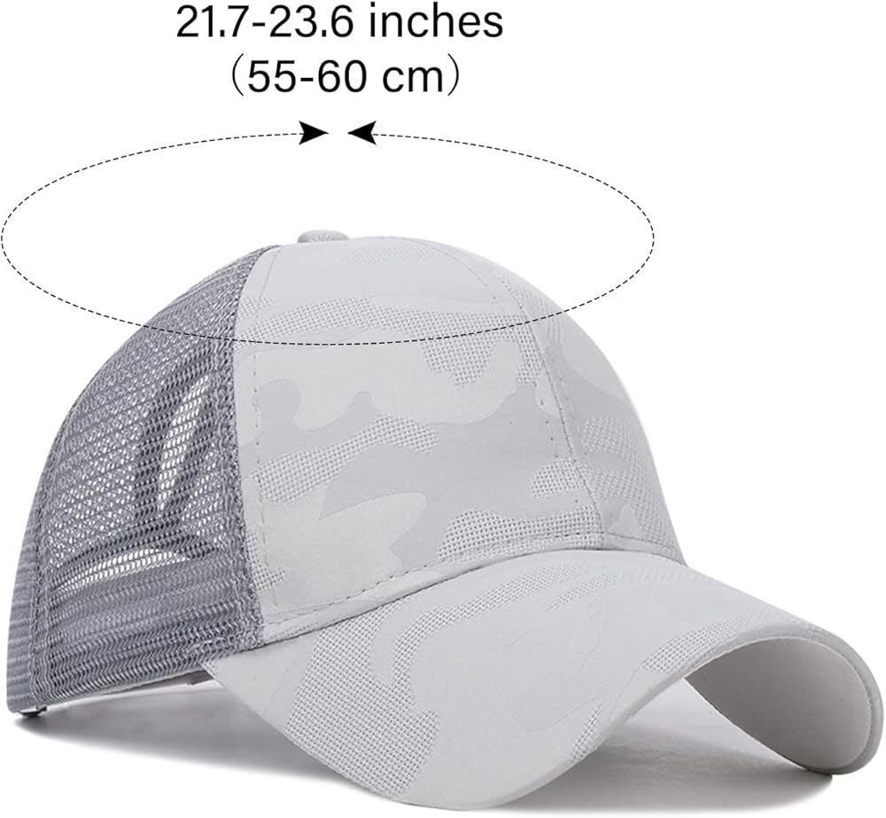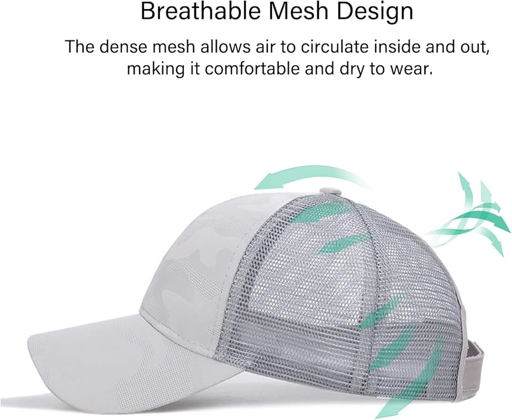 • Women mesh baseball cap - This ponytail baseball cap has a mesh design at the back, the unique mesh construction allows moisture and heat to escape easily from these caps, perfect for summer, sun protection and coolness.