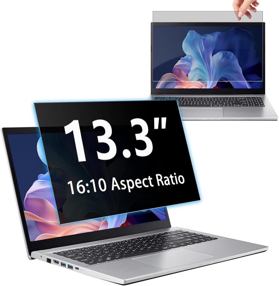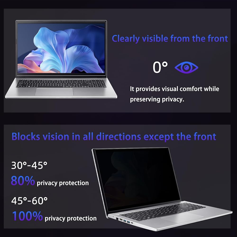 【Protection and Durability】This privacy screen protector is crafted from durable PET material, offering excellent scratch and impact resistance. Its 4H hardness ensures it can withstand daily scratches and abrasion, maintaining screen clarity and aesthetic appeal for years. It safeguards privacy while providing a comfortable working environment. Ideal for privacy-conscious professionals, students, and frequent travelers, this protector balances functionality with discreet protection